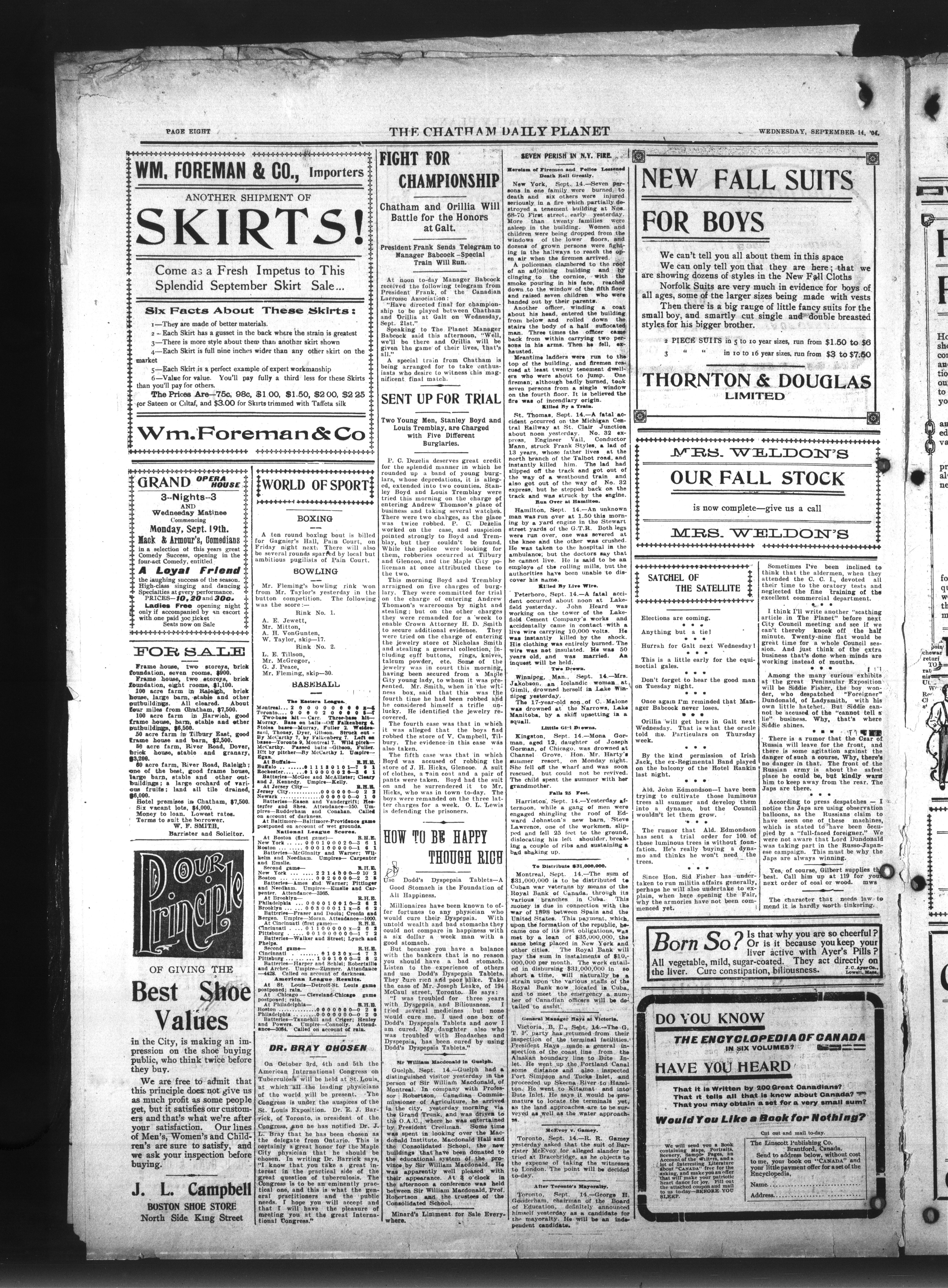 - The Chatham Daily Planet : Vol. XIII, No. 217 (September 14, 1904)