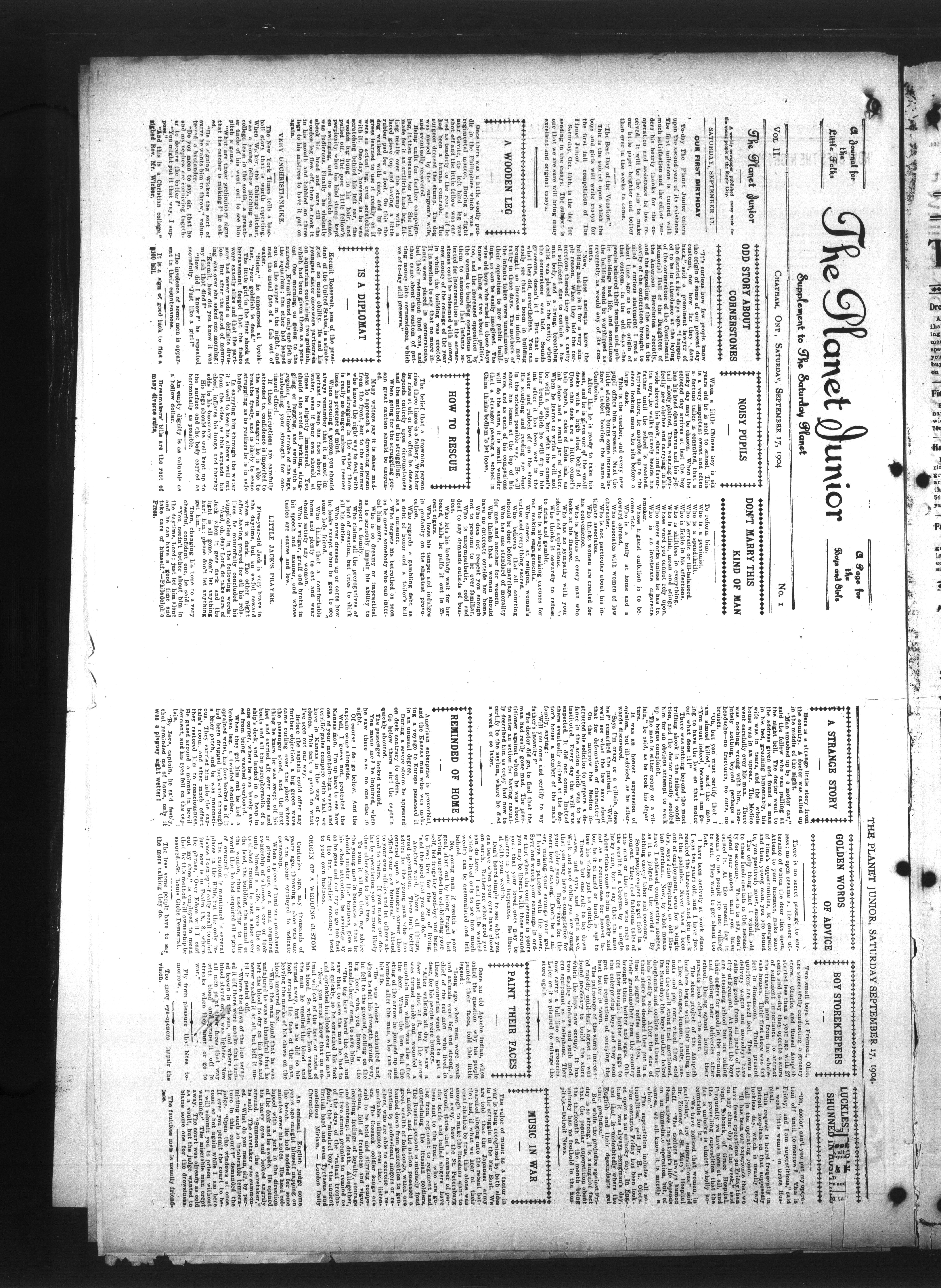 - The Chatham Daily Planet : Vol. XIII, No. 220 (September 17, 1904)