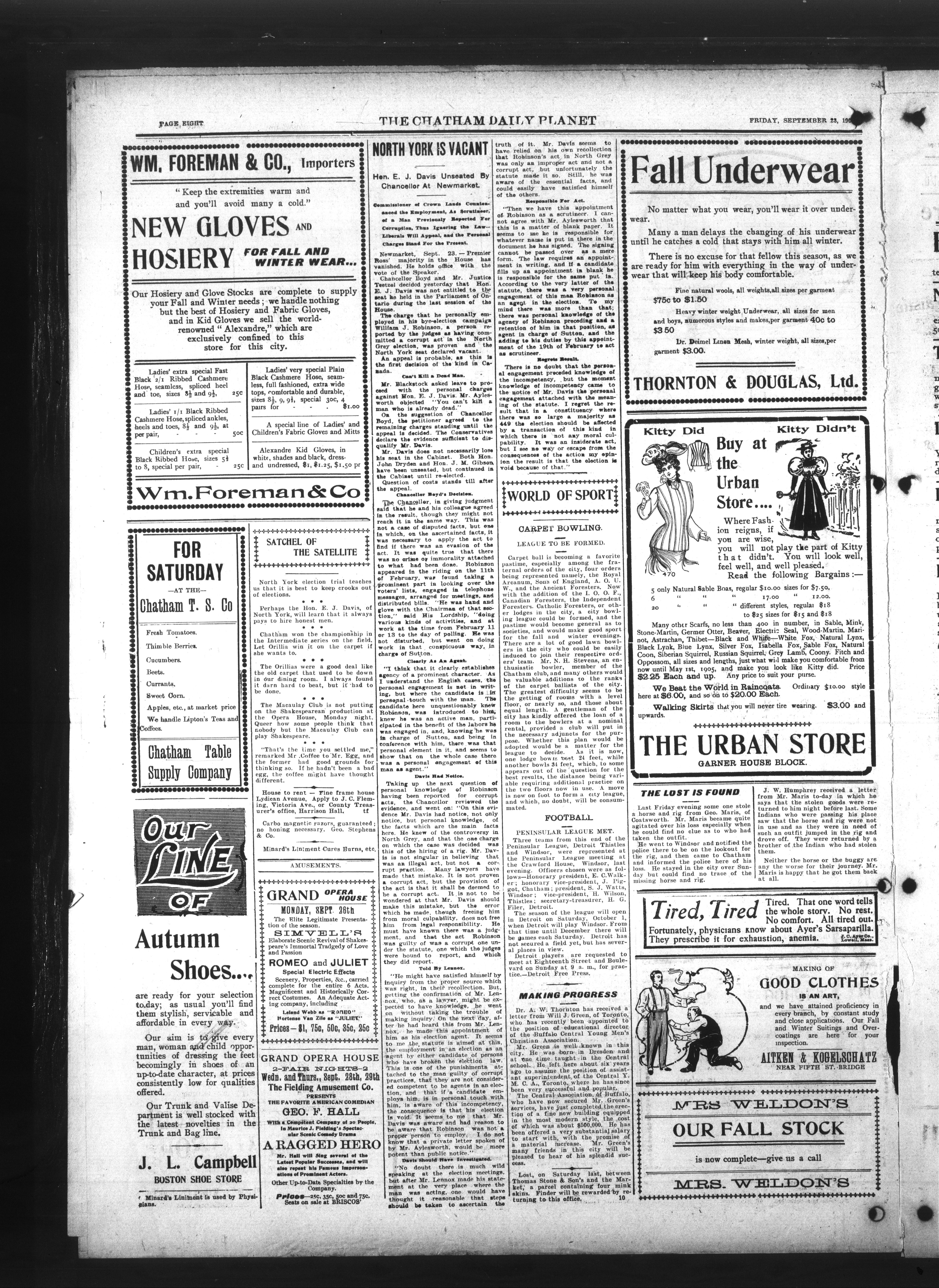 - The Chatham Daily Planet : Vol. XIII, No. 225 (September 23, 1904)