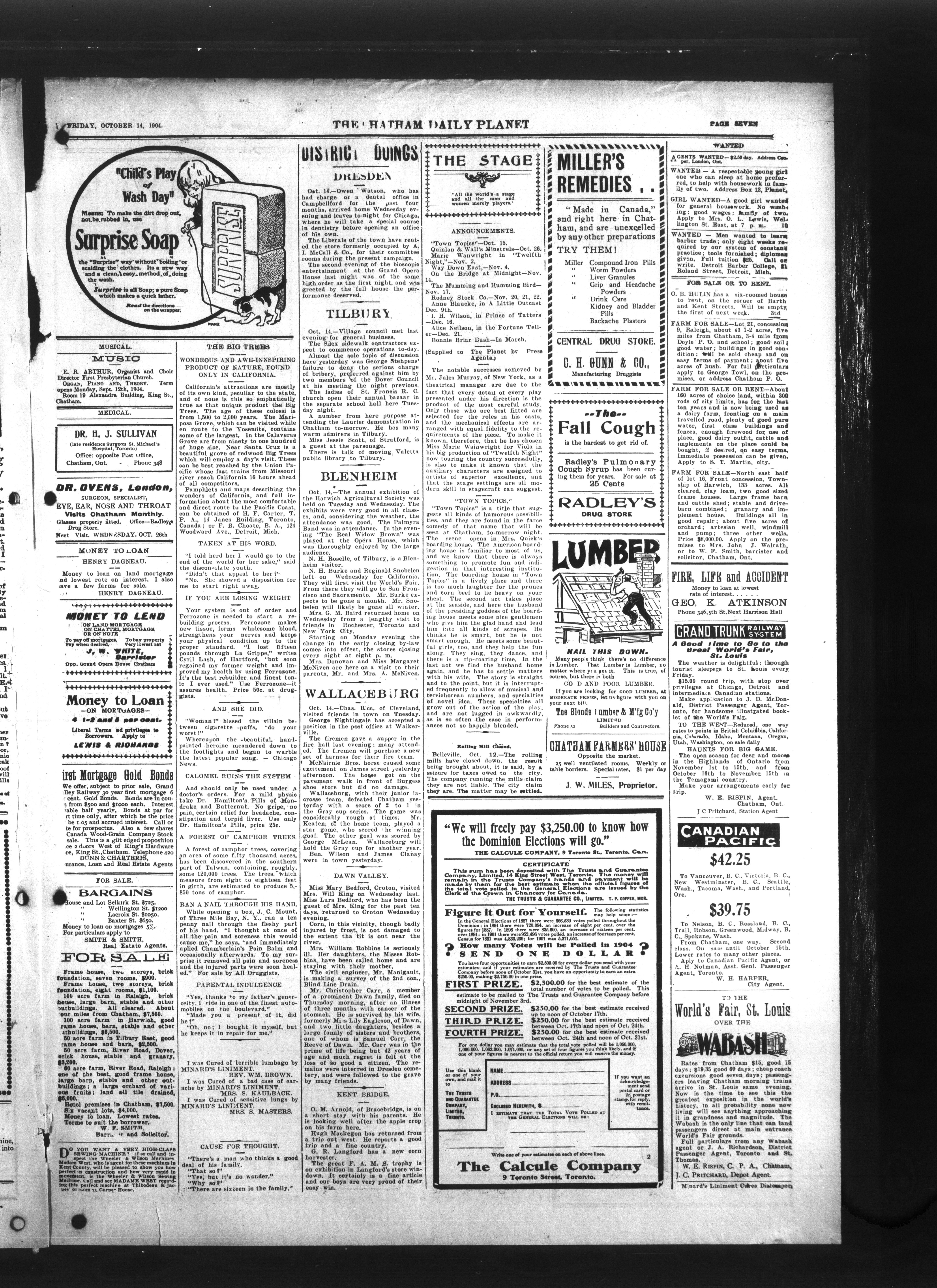 - The Chatham Daily Planet : Vol. XIII, No. 243 (October 14, 1904)