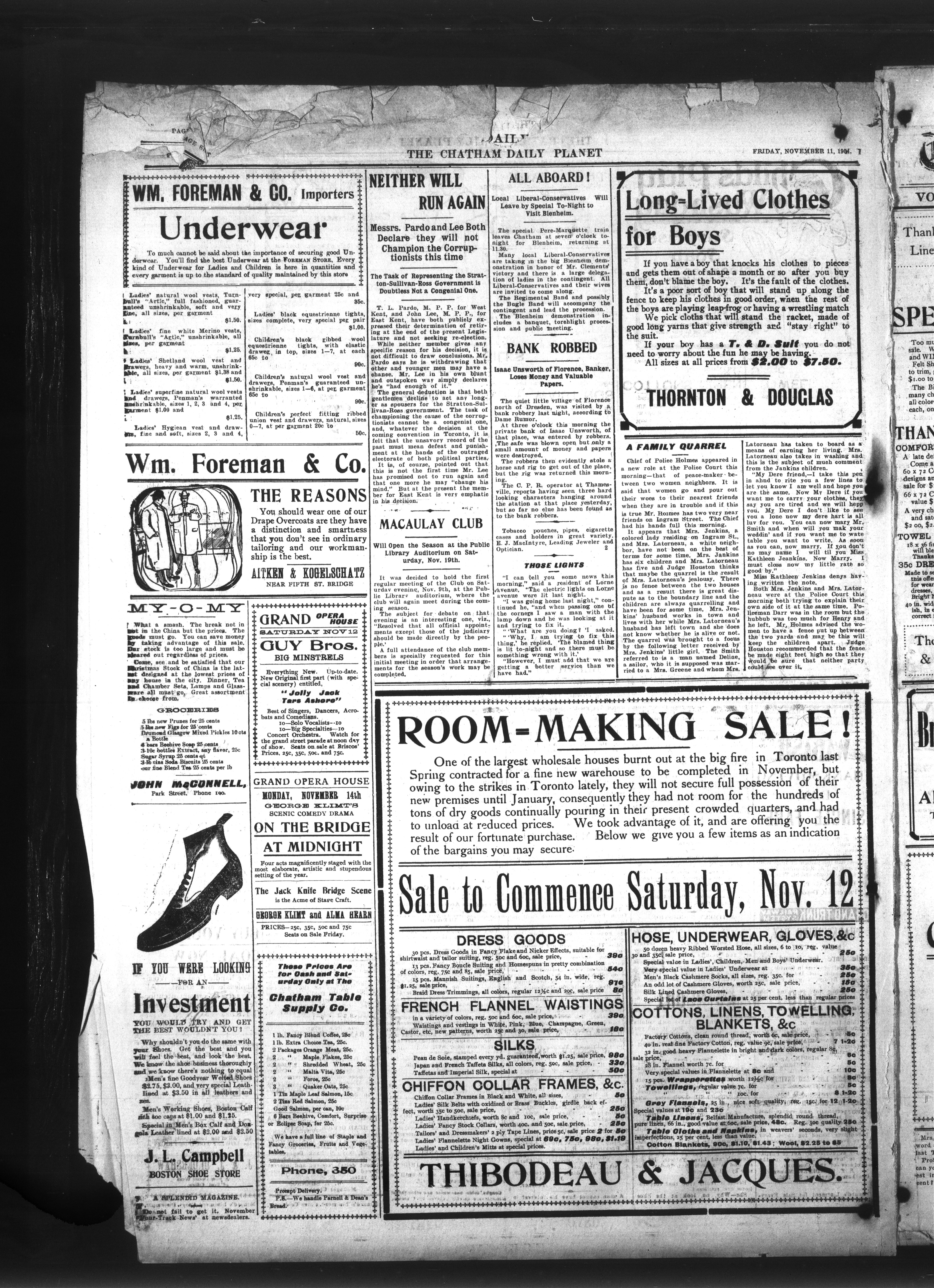 - The Chatham Daily Planet : Vol. XIII, No. 266 (November 11, 1904)