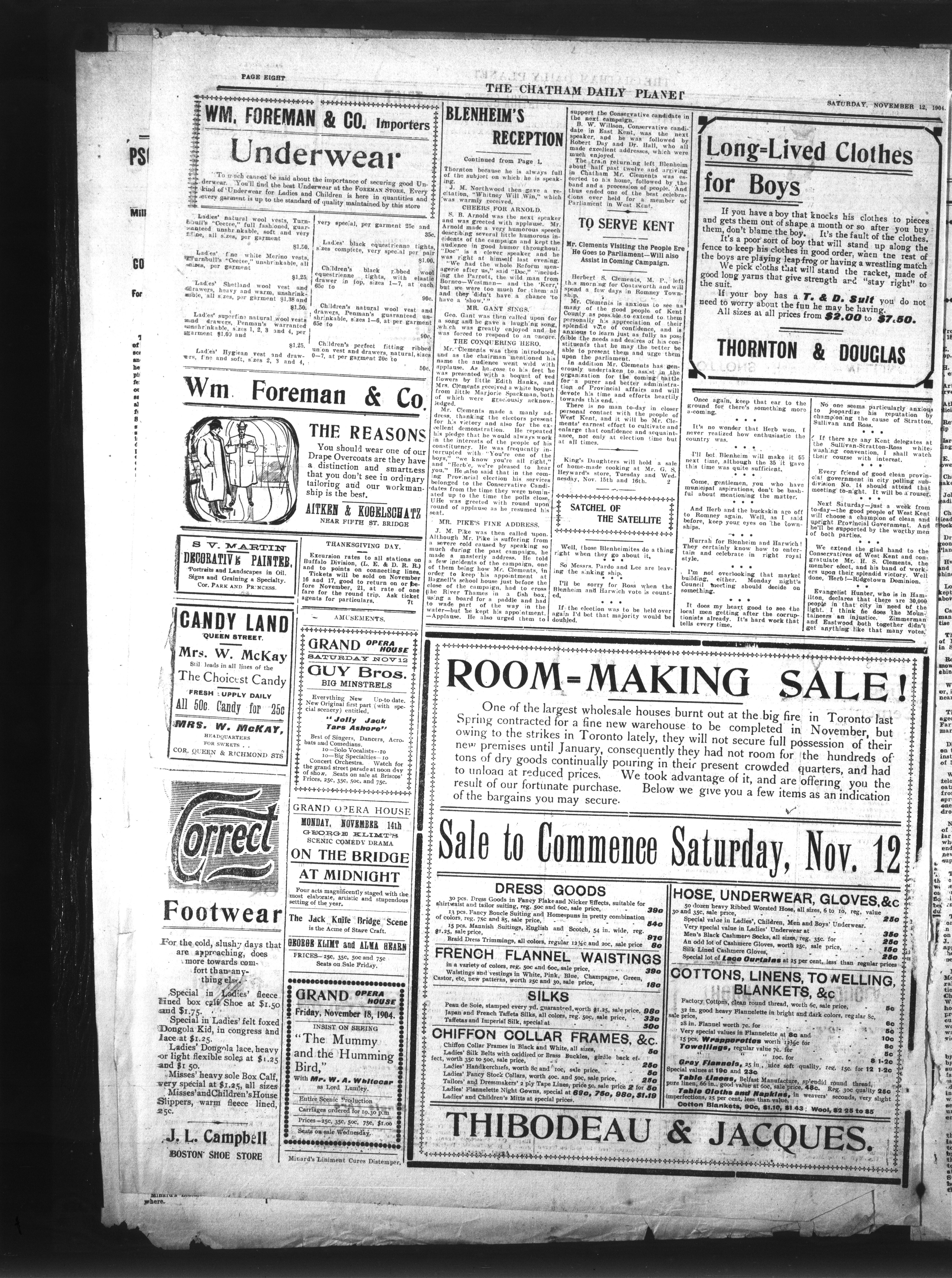 - The Chatham Daily Planet : Vol. XIII, No. 267 (November 12, 1904)