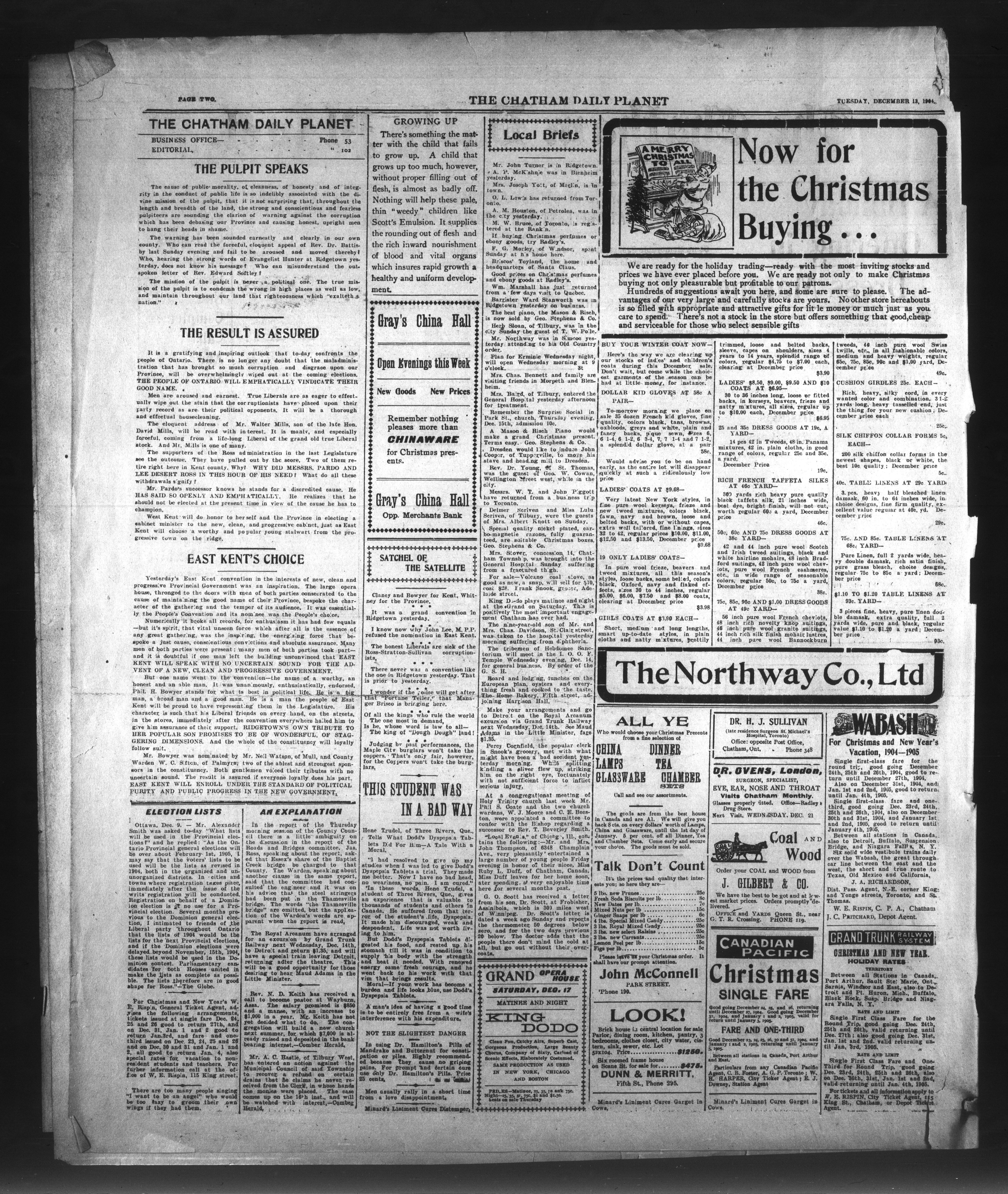 - The Chatham Daily Planet : Vol. XIII, No. 293 (December 13, 1904)