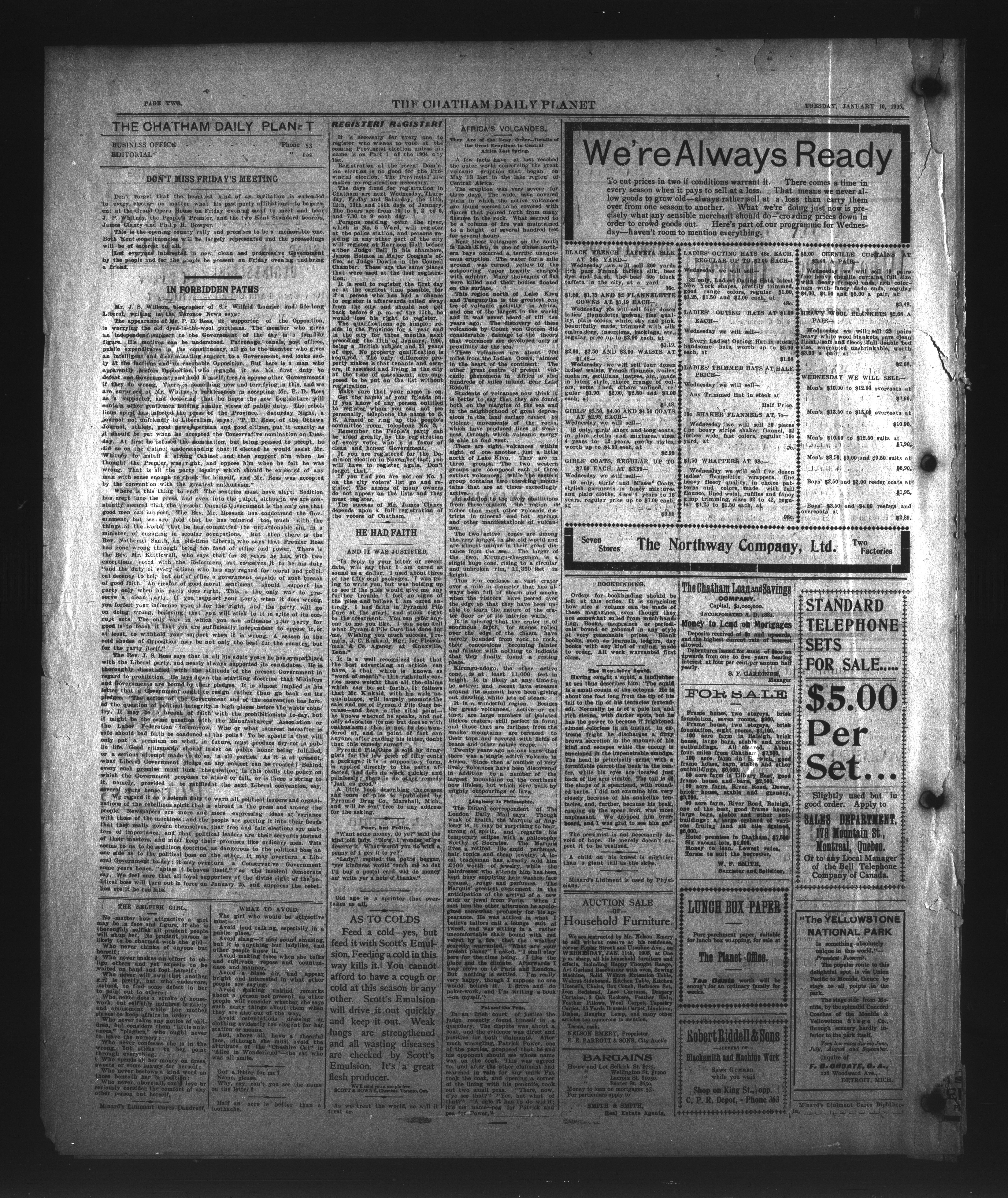 - The Chatham Daily Planet : Vol. XIV, No. 8 (January 10, 1905)