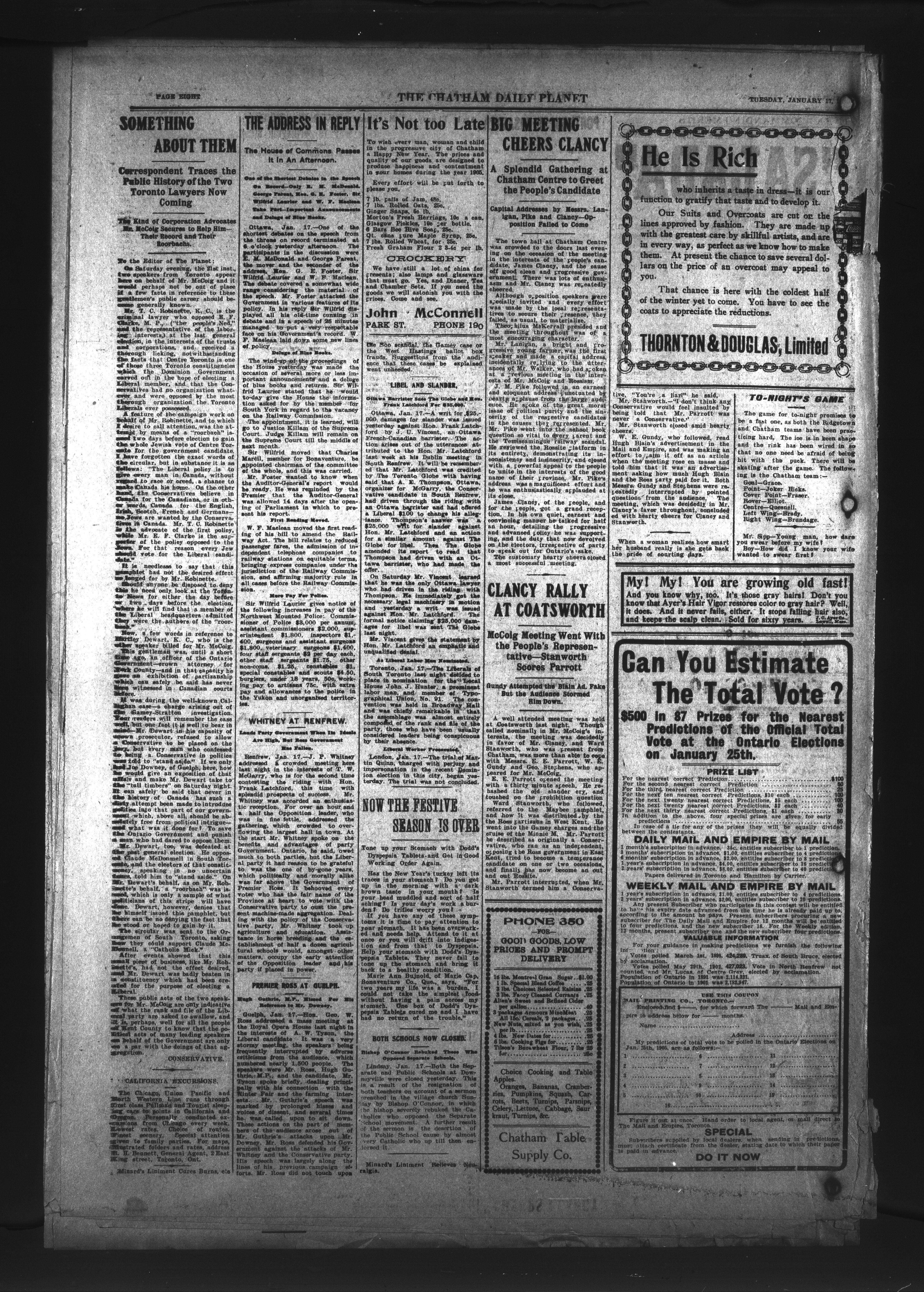 - The Chatham Daily Planet : Vol. XIV, No. 14 (January 17, 1905)