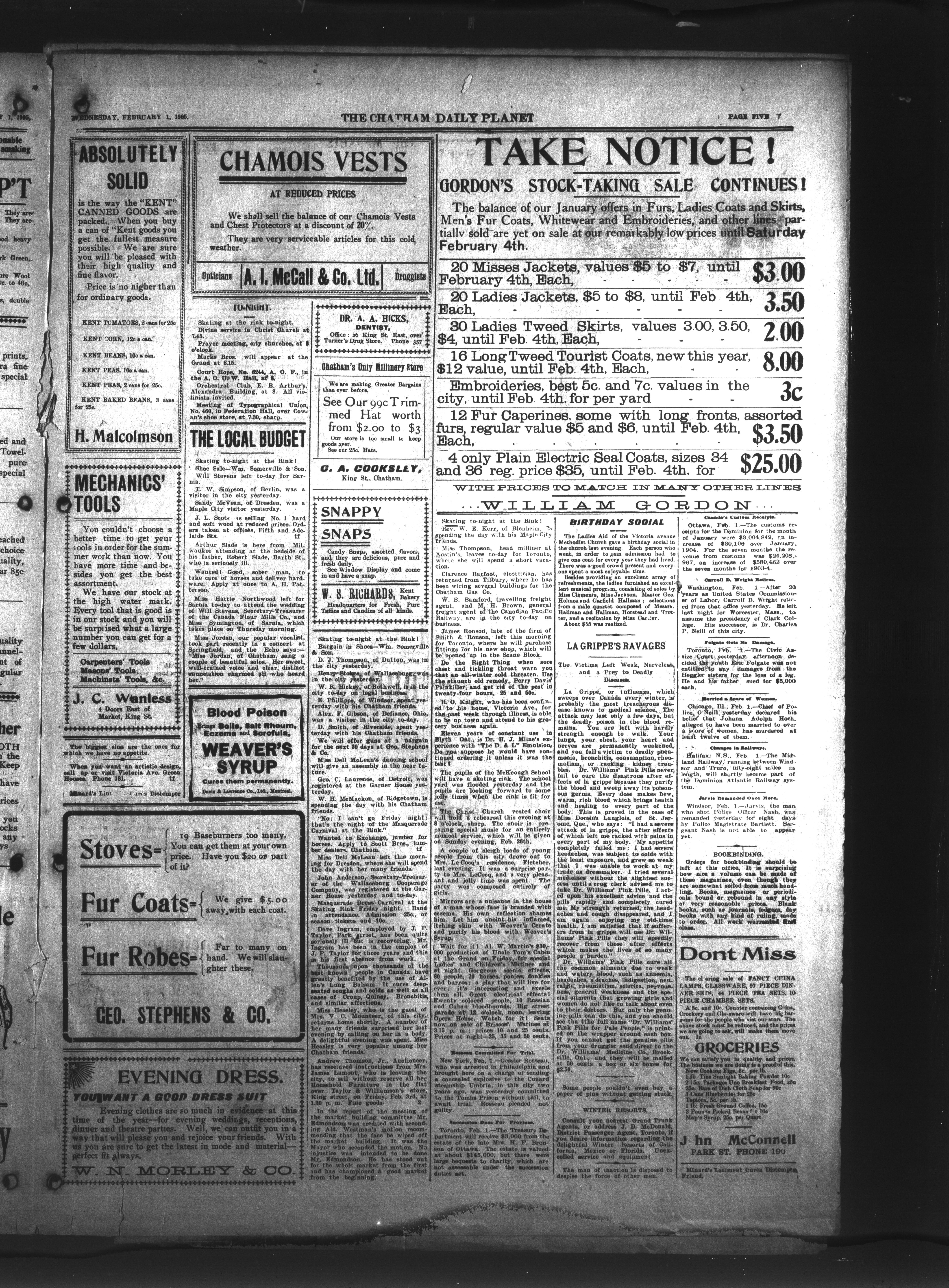 The Chatham Daily Planet : Vol. XIV, No. 27 (February 1, 1905)