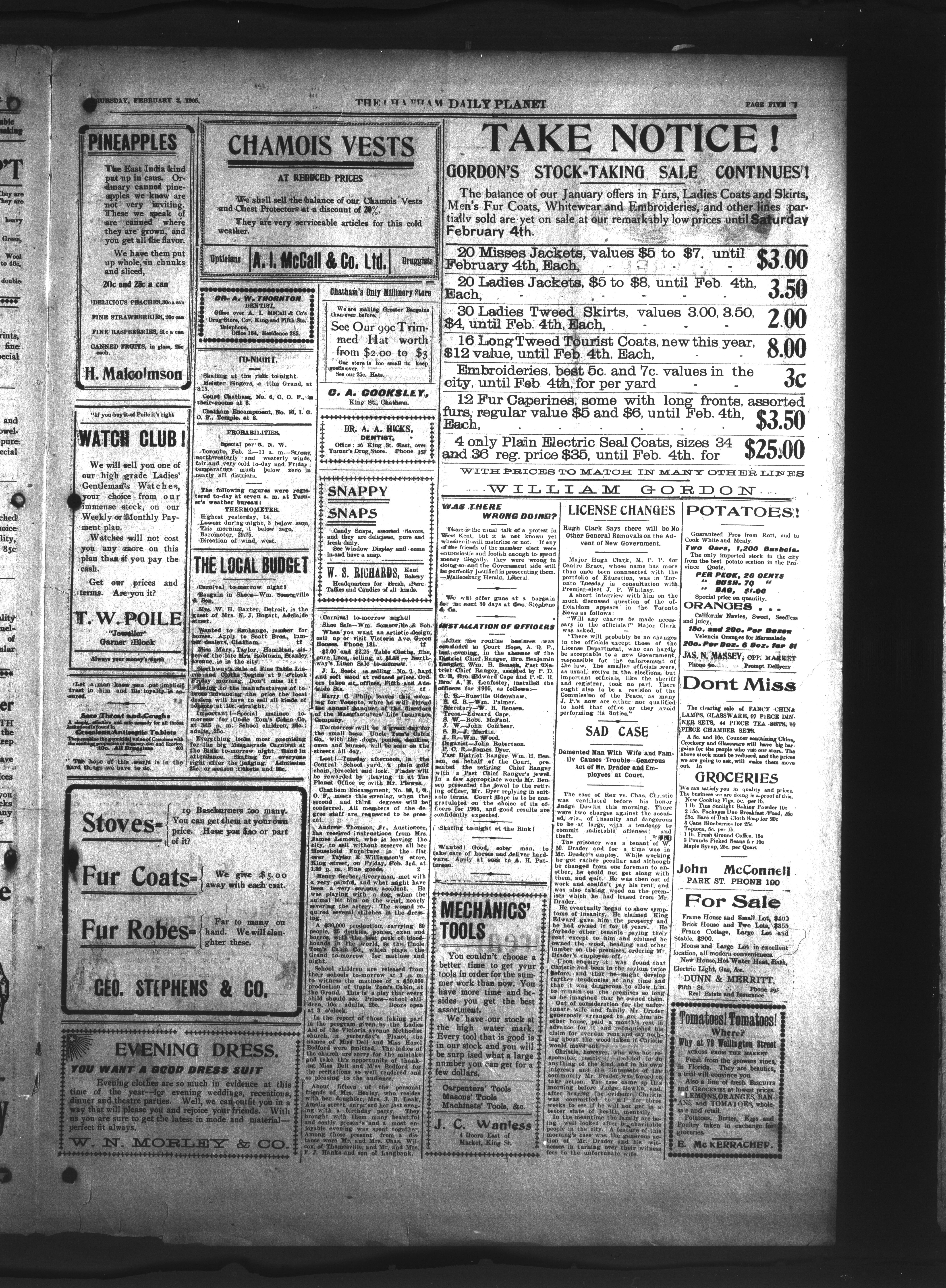 - The Chatham Daily Planet : Vol. XIV, No. 28 (February 2, 1905)