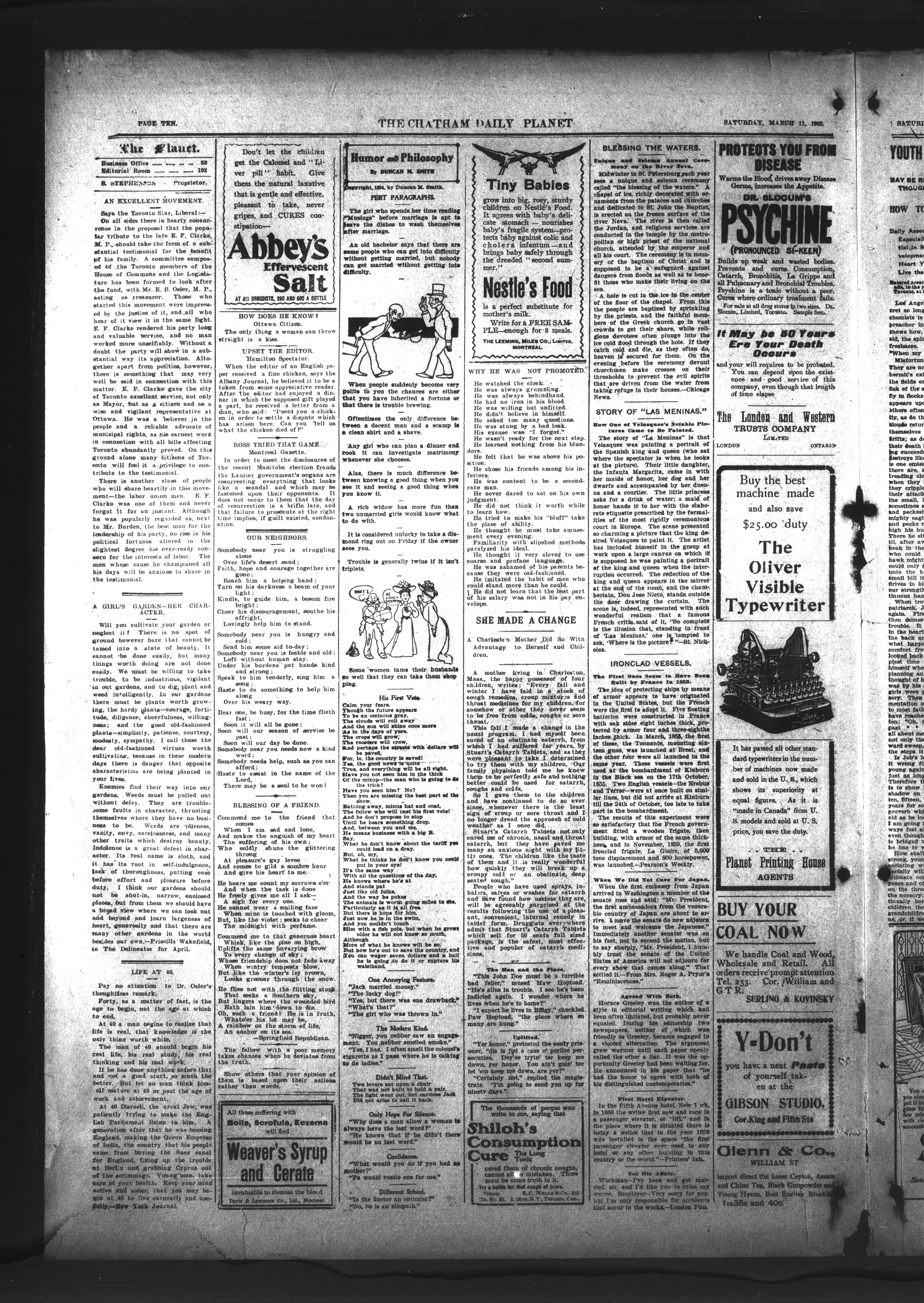 - The Chatham Daily Planet : Vol. XIV, No. 60 (March 11, 1905)