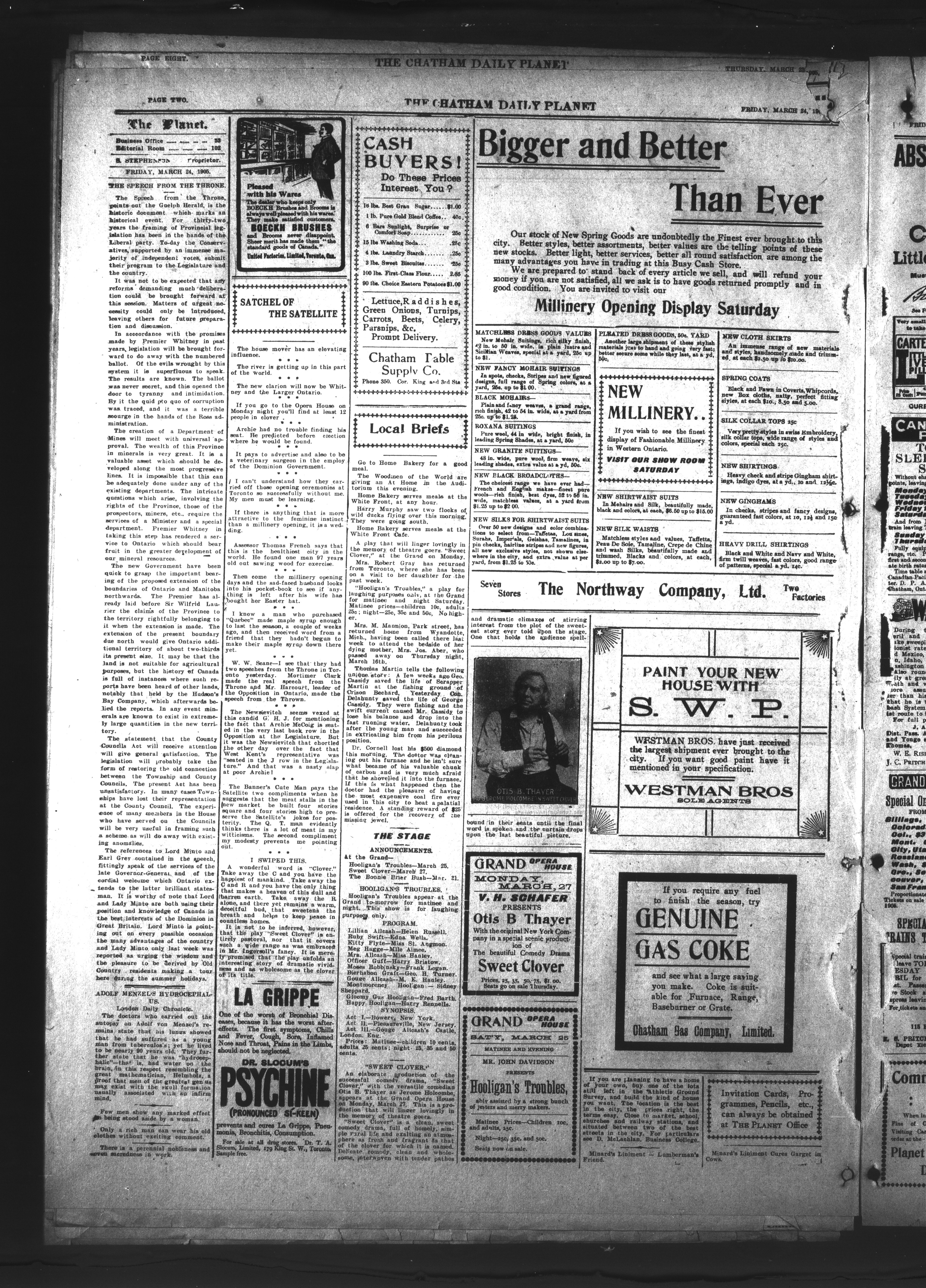 - The Chatham Daily Planet : Vol. XIV, No. 71 (March 24, 1905)