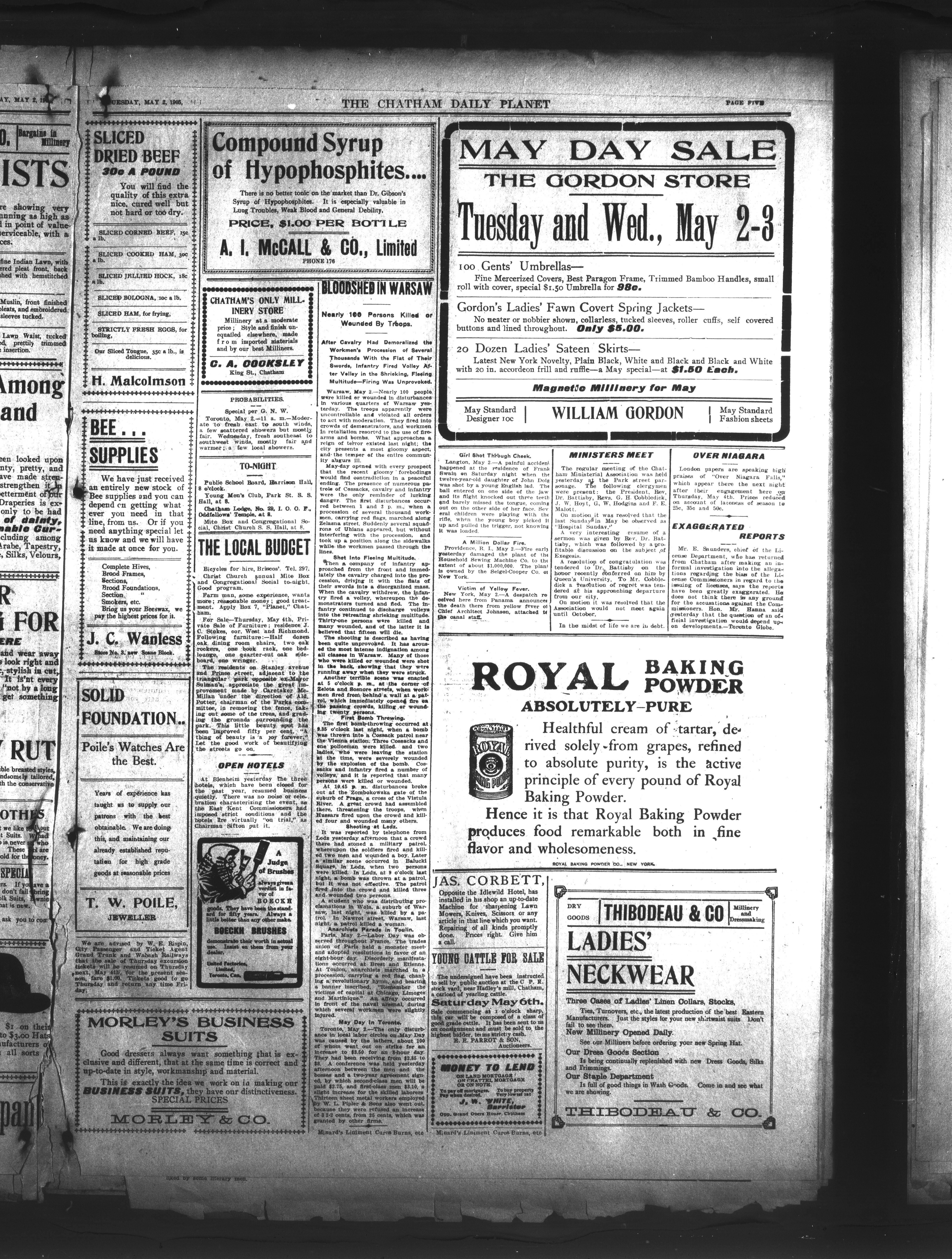 - The Chatham Daily Planet : Vol. XIV, No. 100 (May 2, 1905)