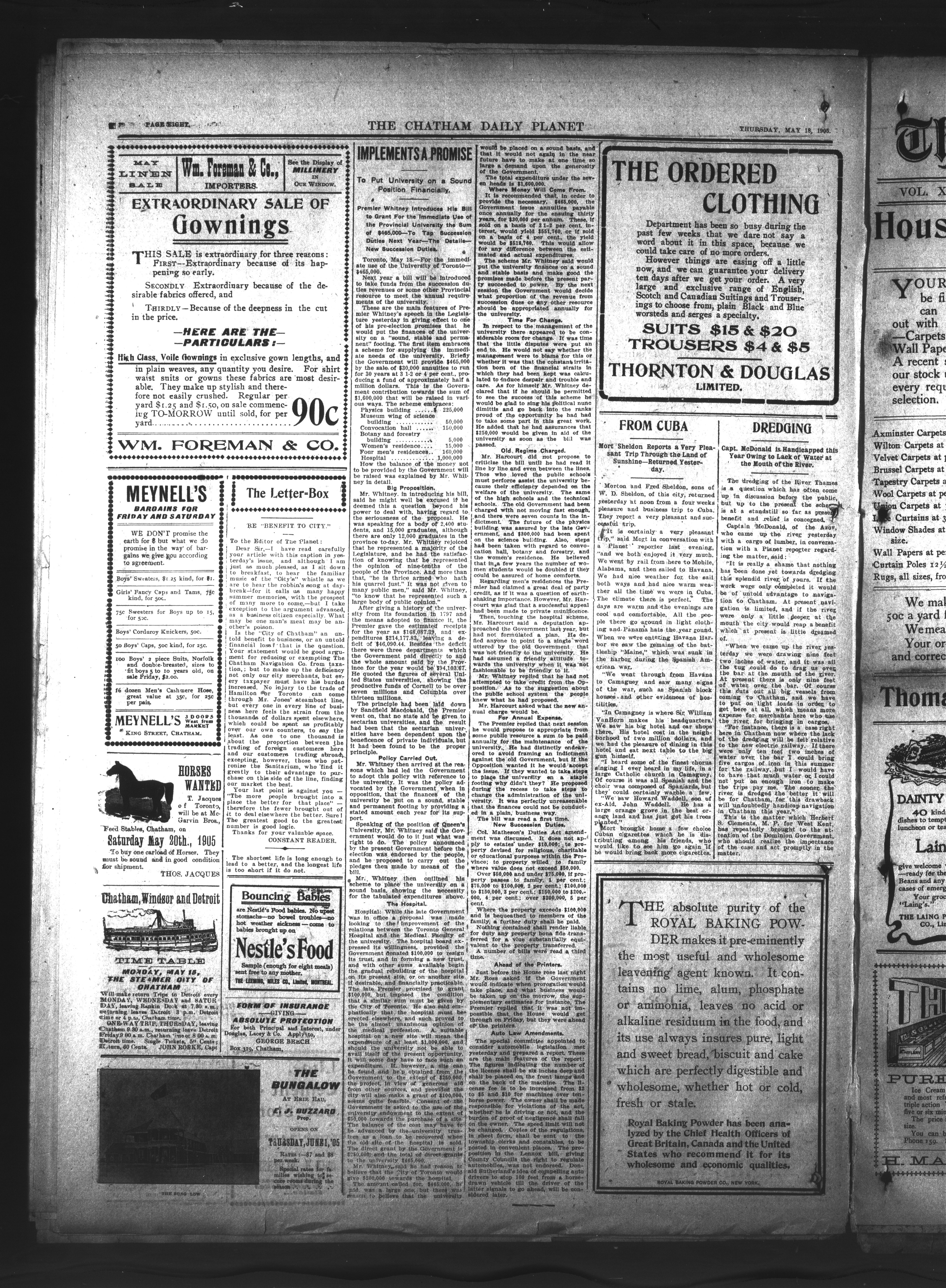 - The Chatham Daily Planet : Vol. XIV, No. 115 (May 18, 1905)