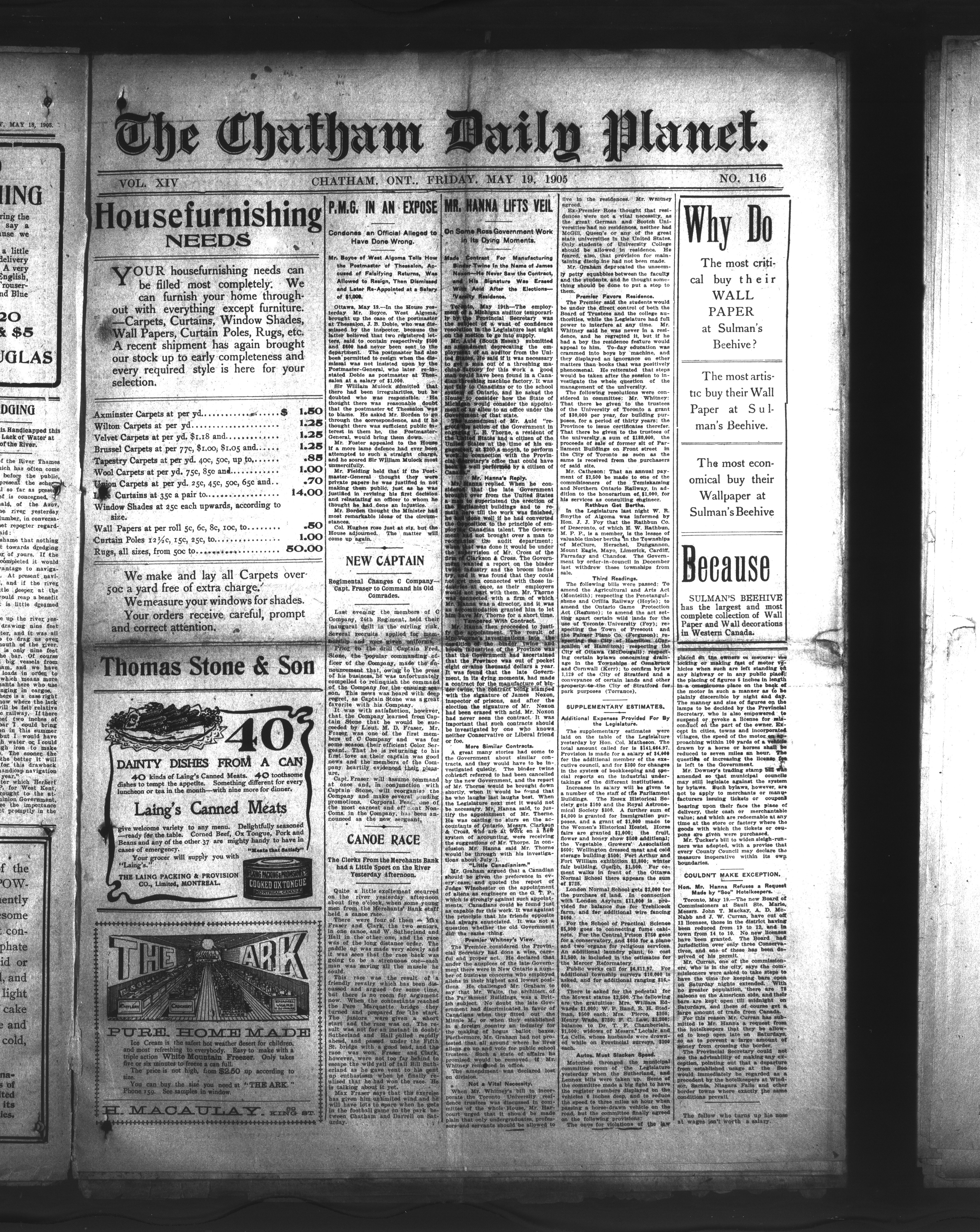 - The Chatham Daily Planet : Vol. XIV, No. 116 (May 19, 1905)