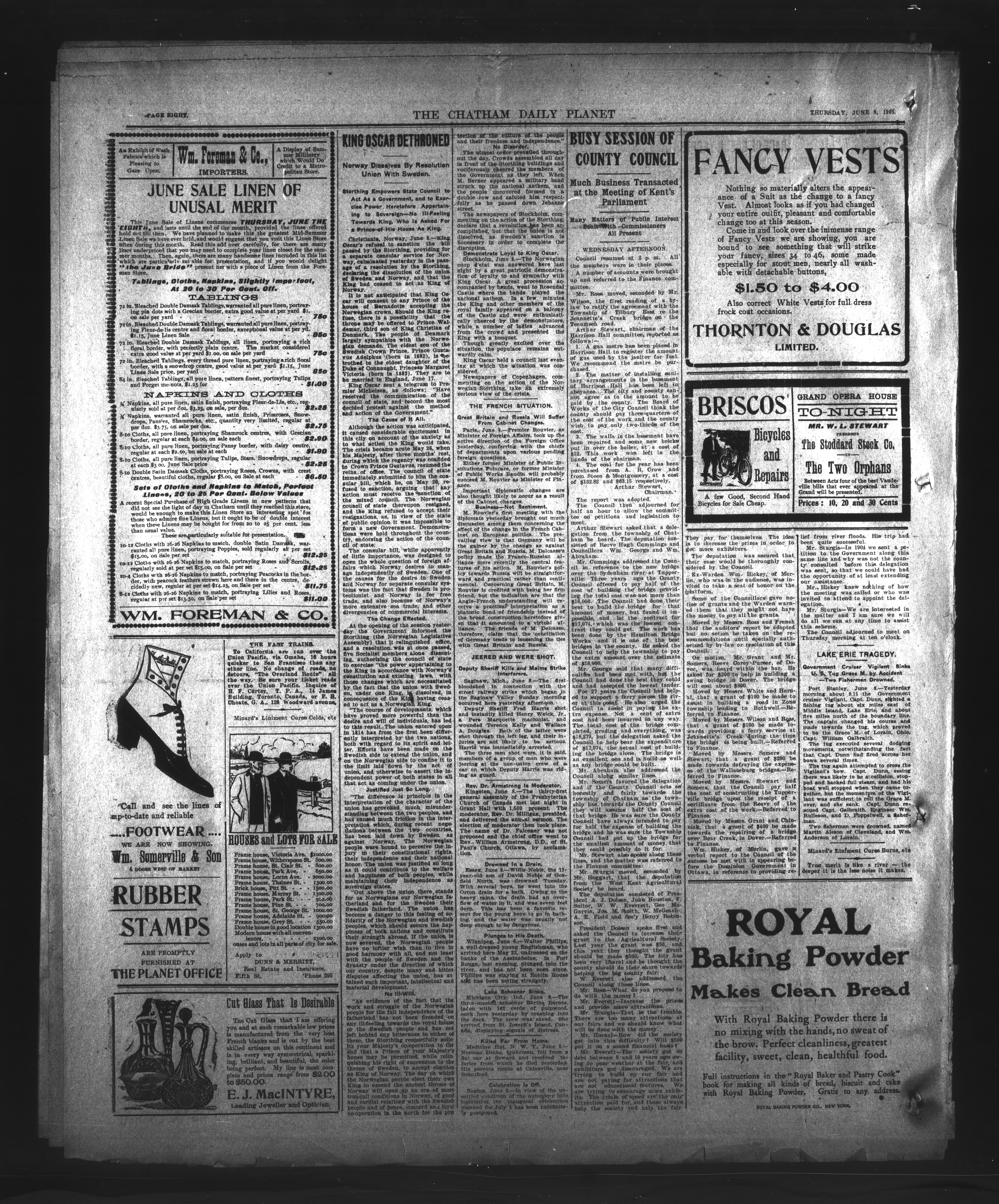 - The Chatham Daily Planet : Vol. XIV, No. 133 (June 8, 1905)