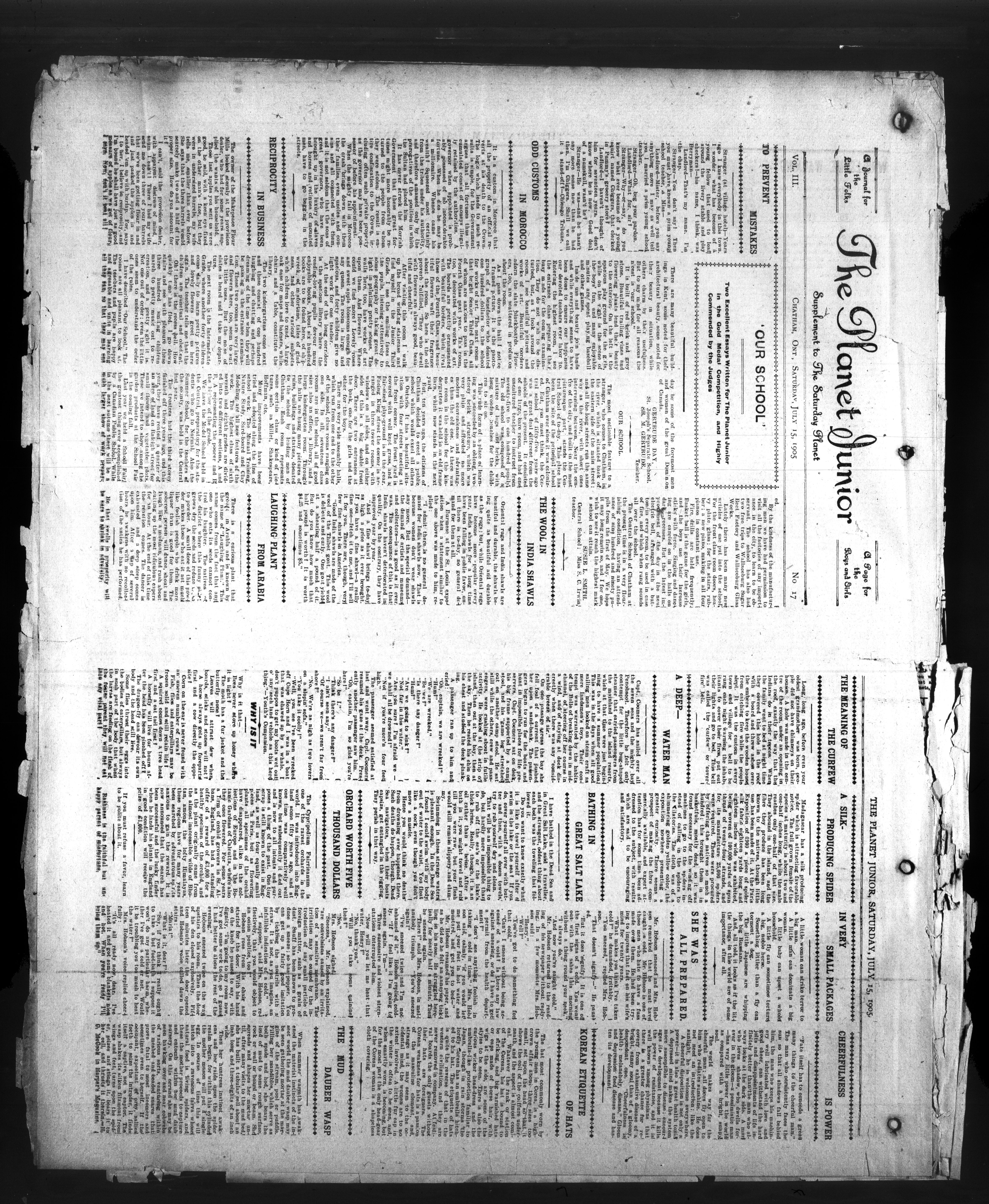 - The Chatham Daily Planet : Vol. XIV, No. 165 (July 15, 1905)