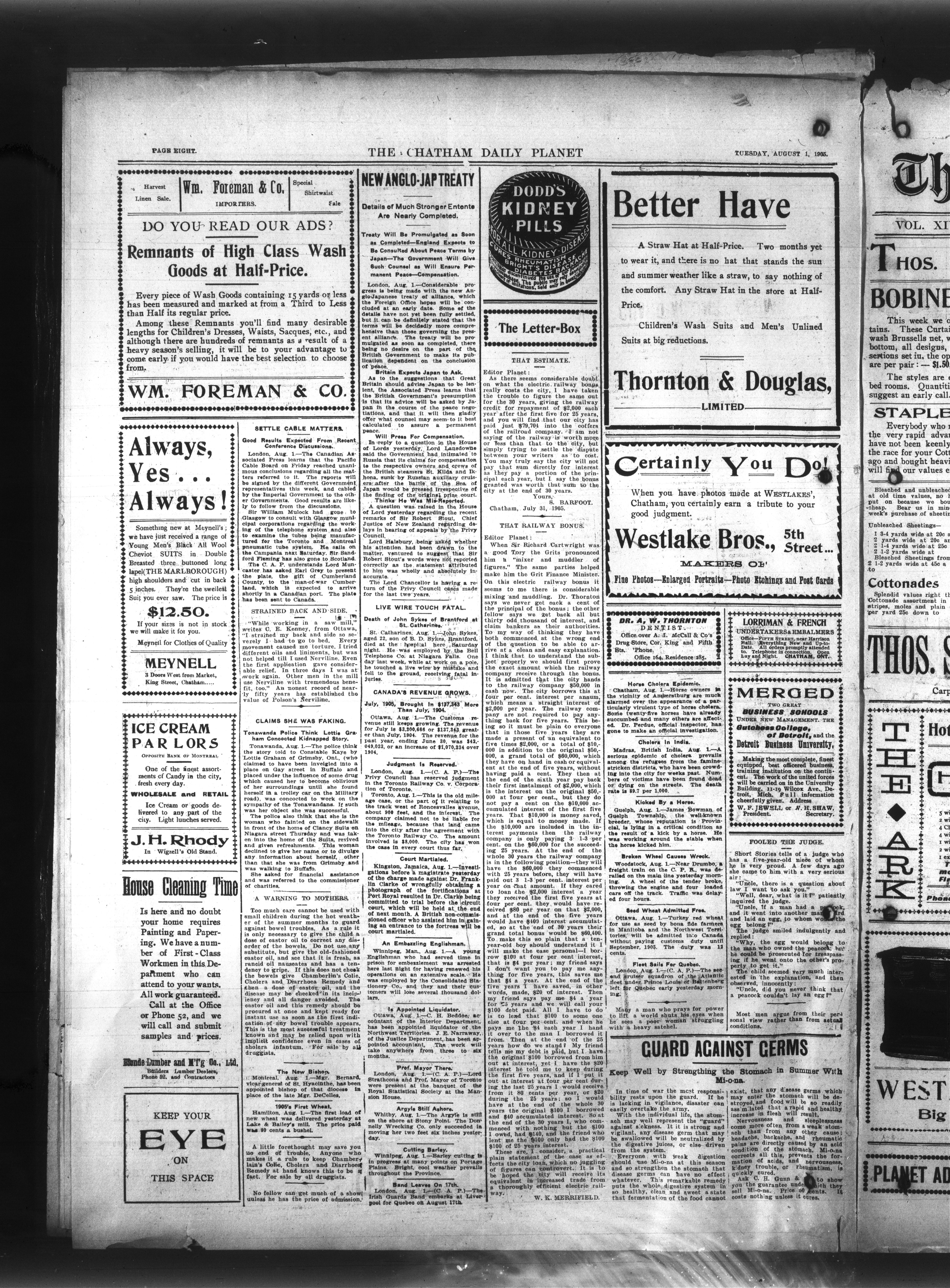 - The Chatham Daily Planet : Vol. XIV, No. 179 (August 1, 1905)