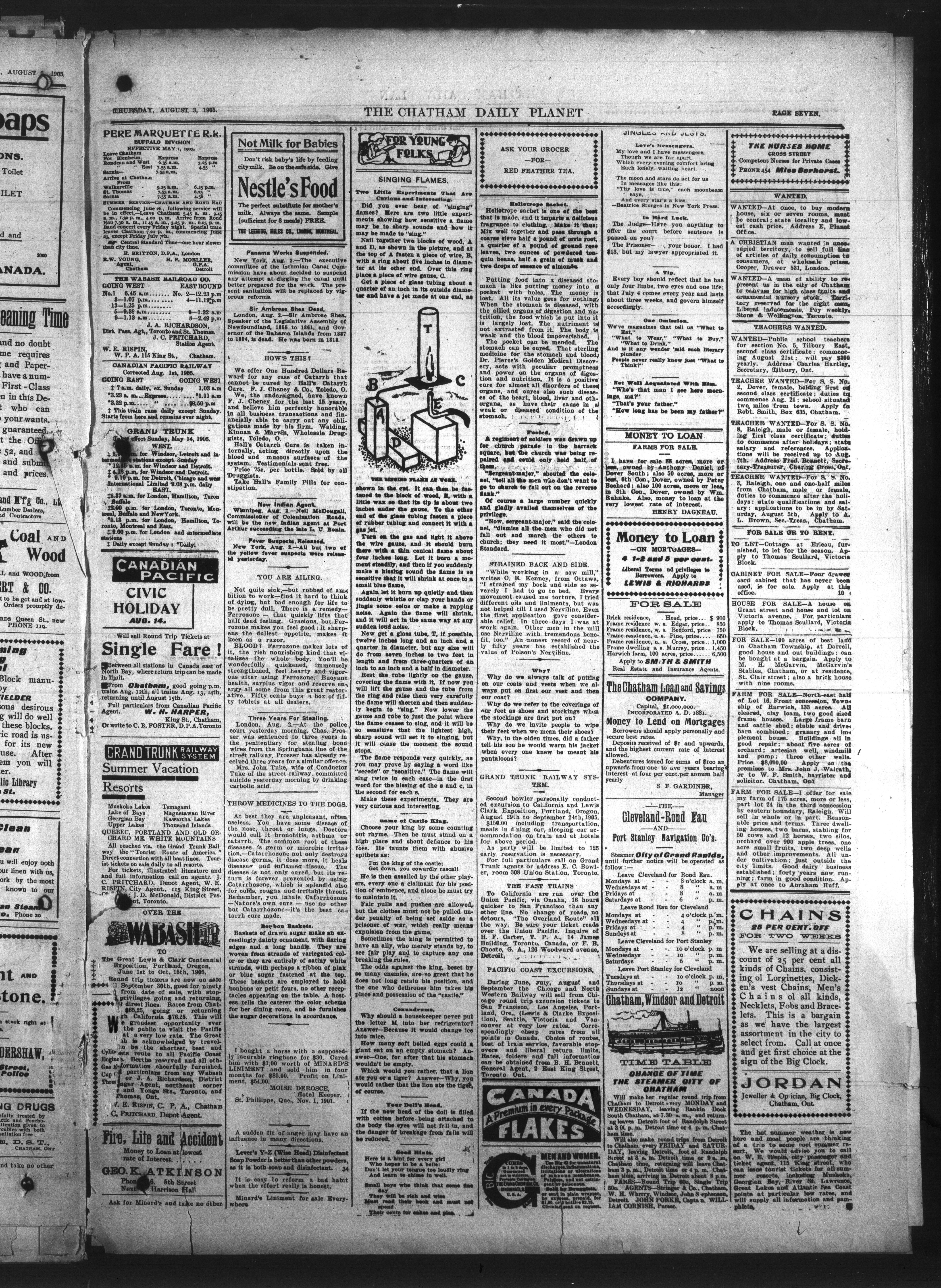 - The Chatham Daily Planet : Vol. XIV, No. 181 (August 3, 1905)
