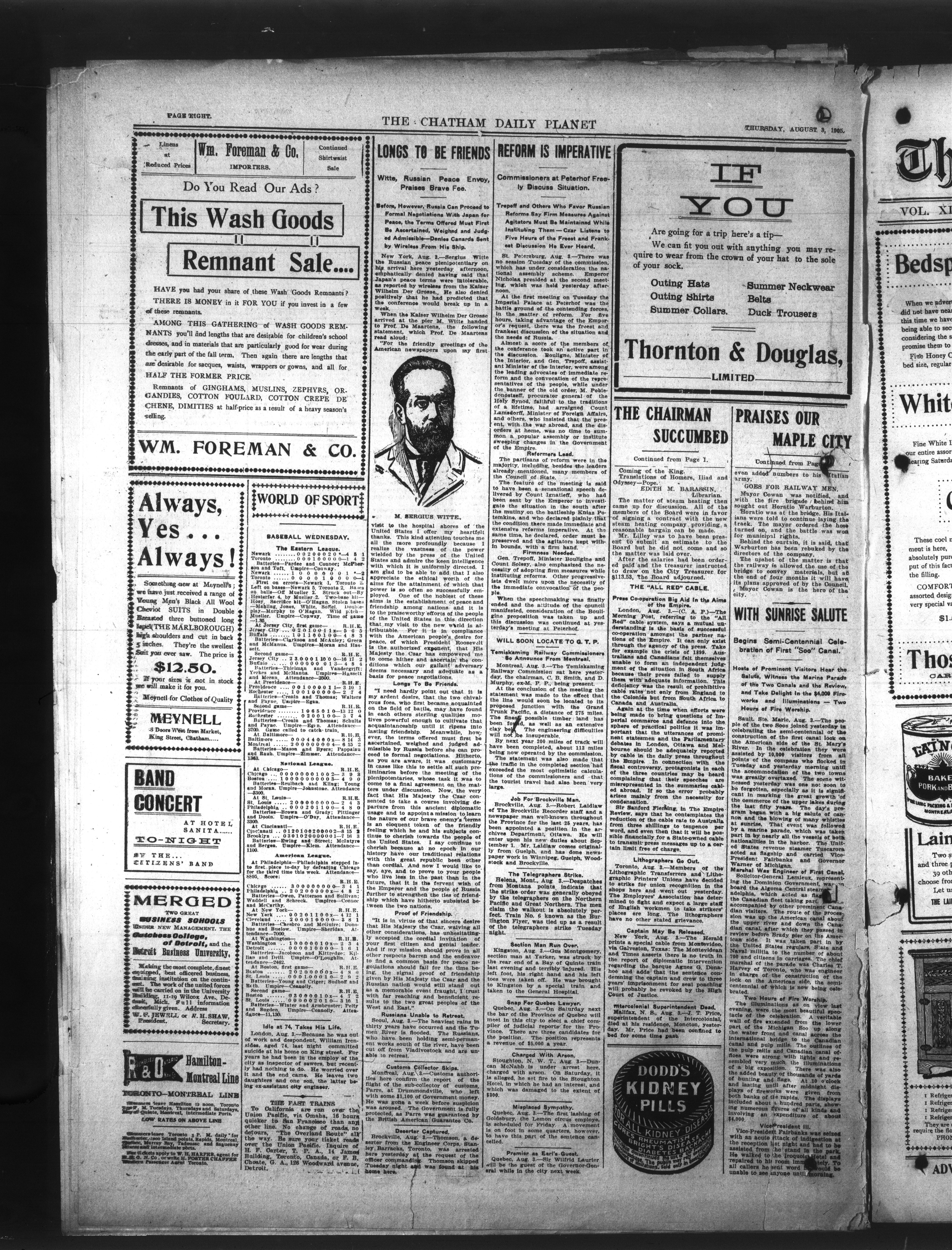- The Chatham Daily Planet : Vol. XIV, No. 181 (August 3, 1905)