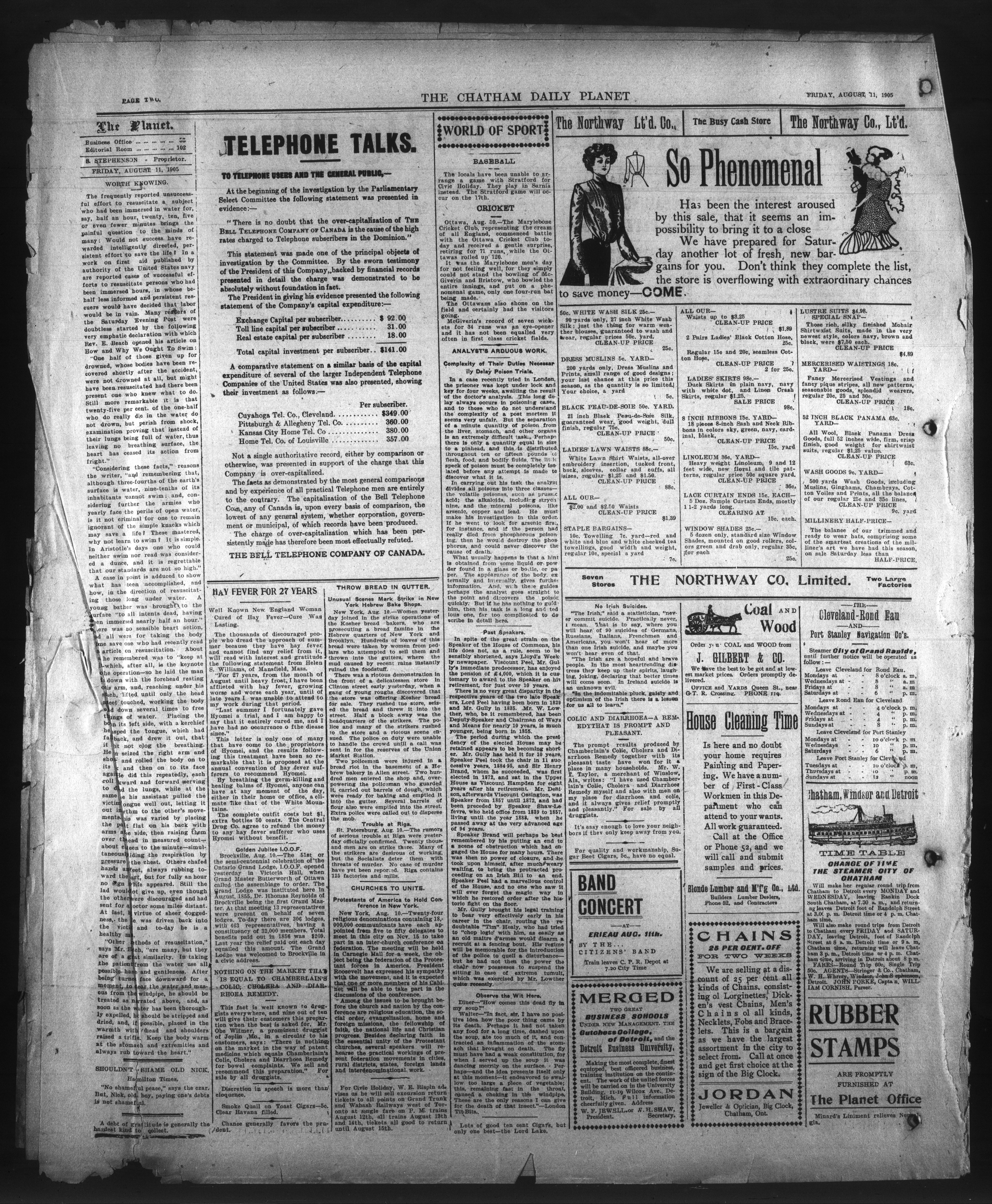 - The Chatham Daily Planet : Vol. XIV, No. 188 (August 11, 1905)