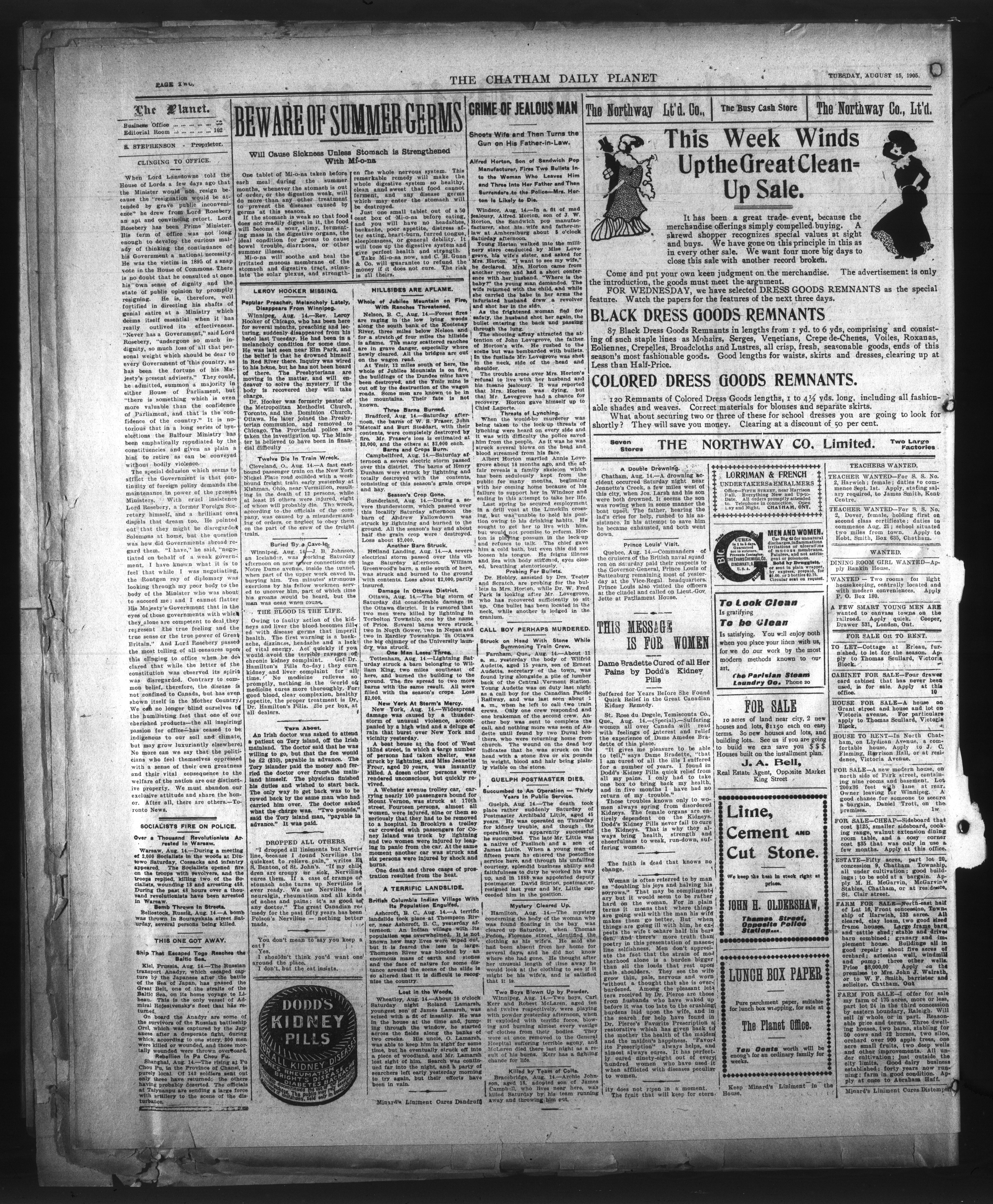 - The Chatham Daily Planet : Vol. XIV, No. 191 (August 15, 1905)