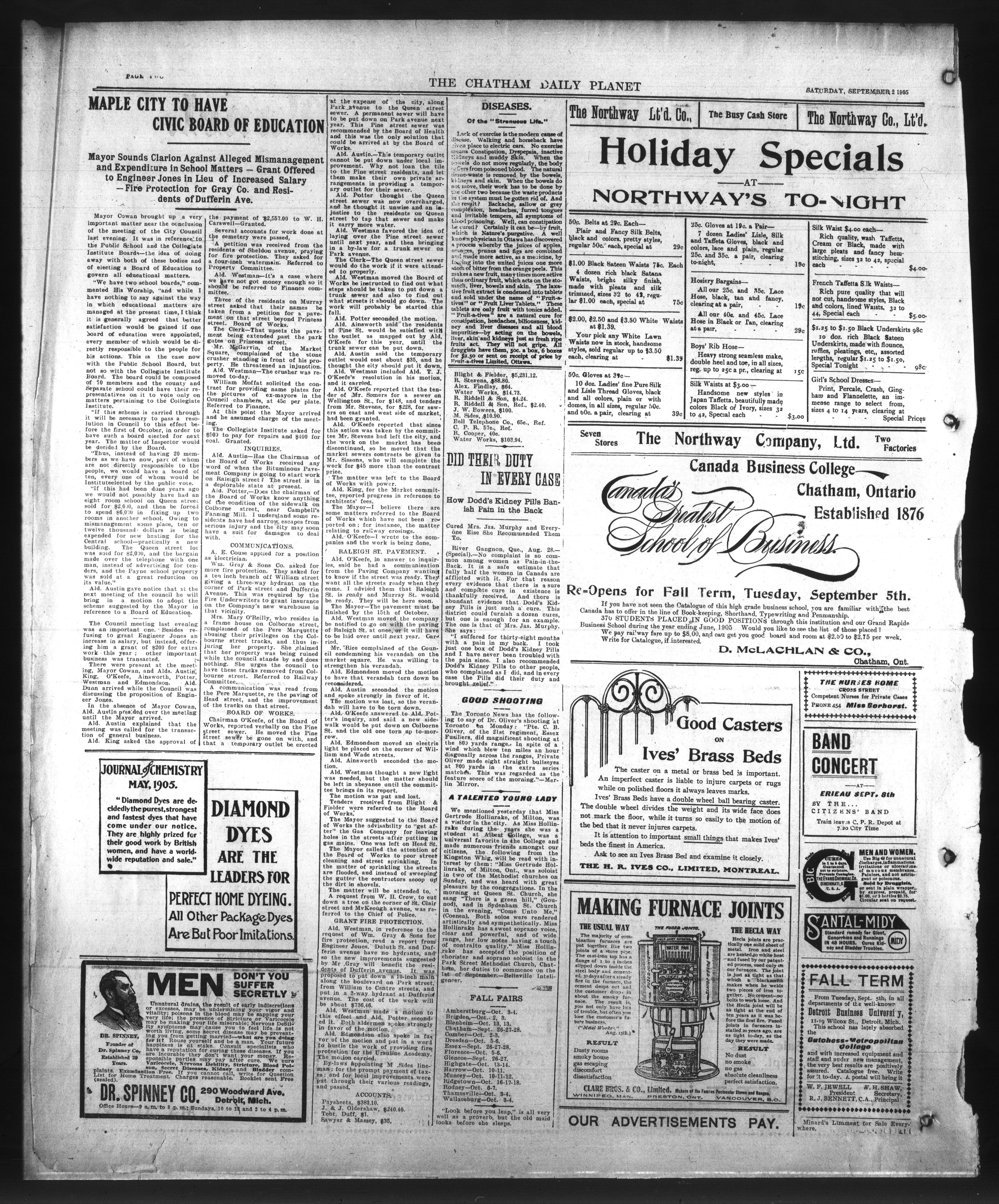 - The Chatham Daily Planet : Vol. XIV, No. 207 (September 2, 1905)
