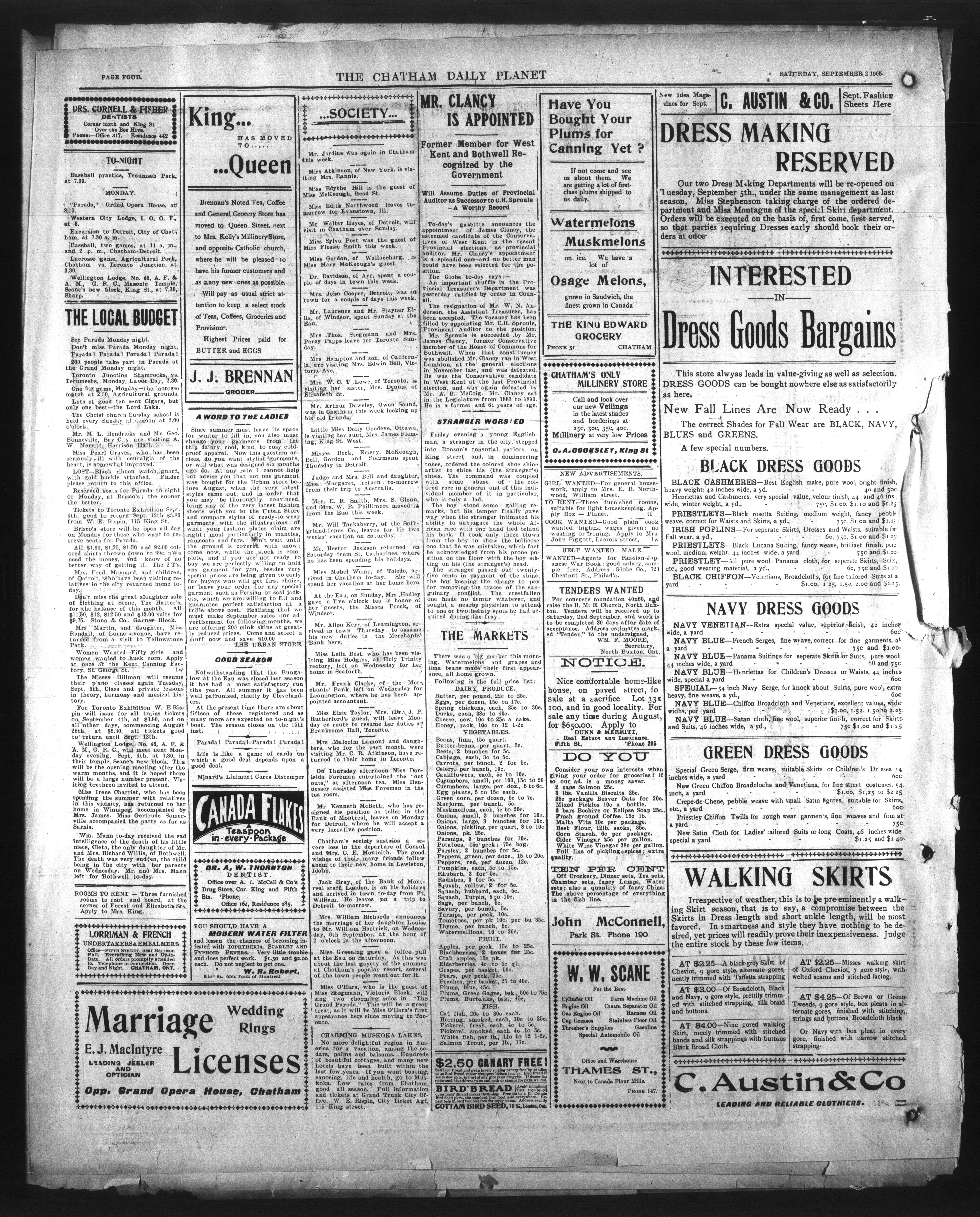 - The Chatham Daily Planet : Vol. XIV, No. 207 (September 2, 1905)