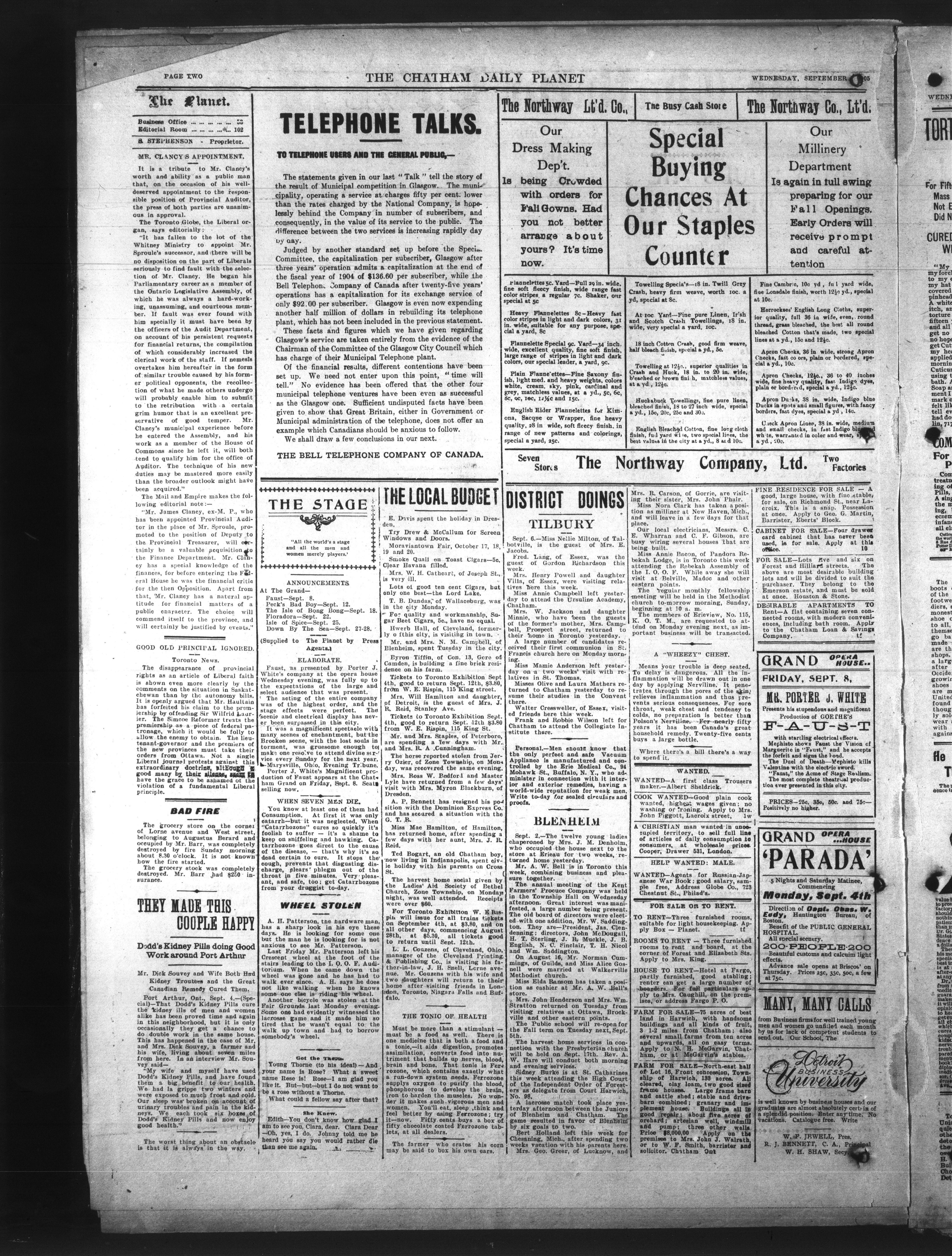 - The Chatham Daily Planet : Vol. XIV, No. 210 (September 6, 1905)