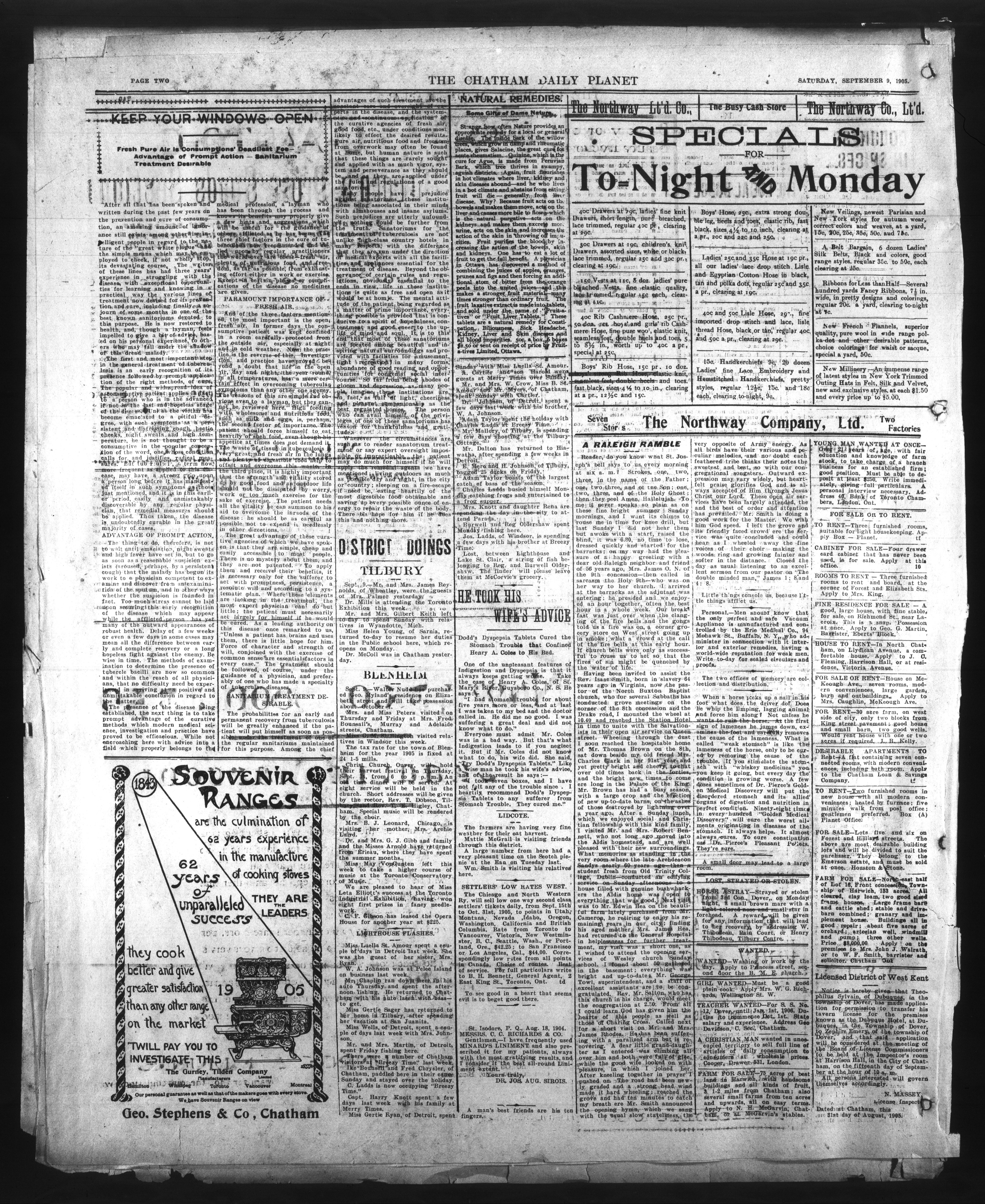 - The Chatham Daily Planet : Vol. XIV, No. 213 (September 9, 1905)