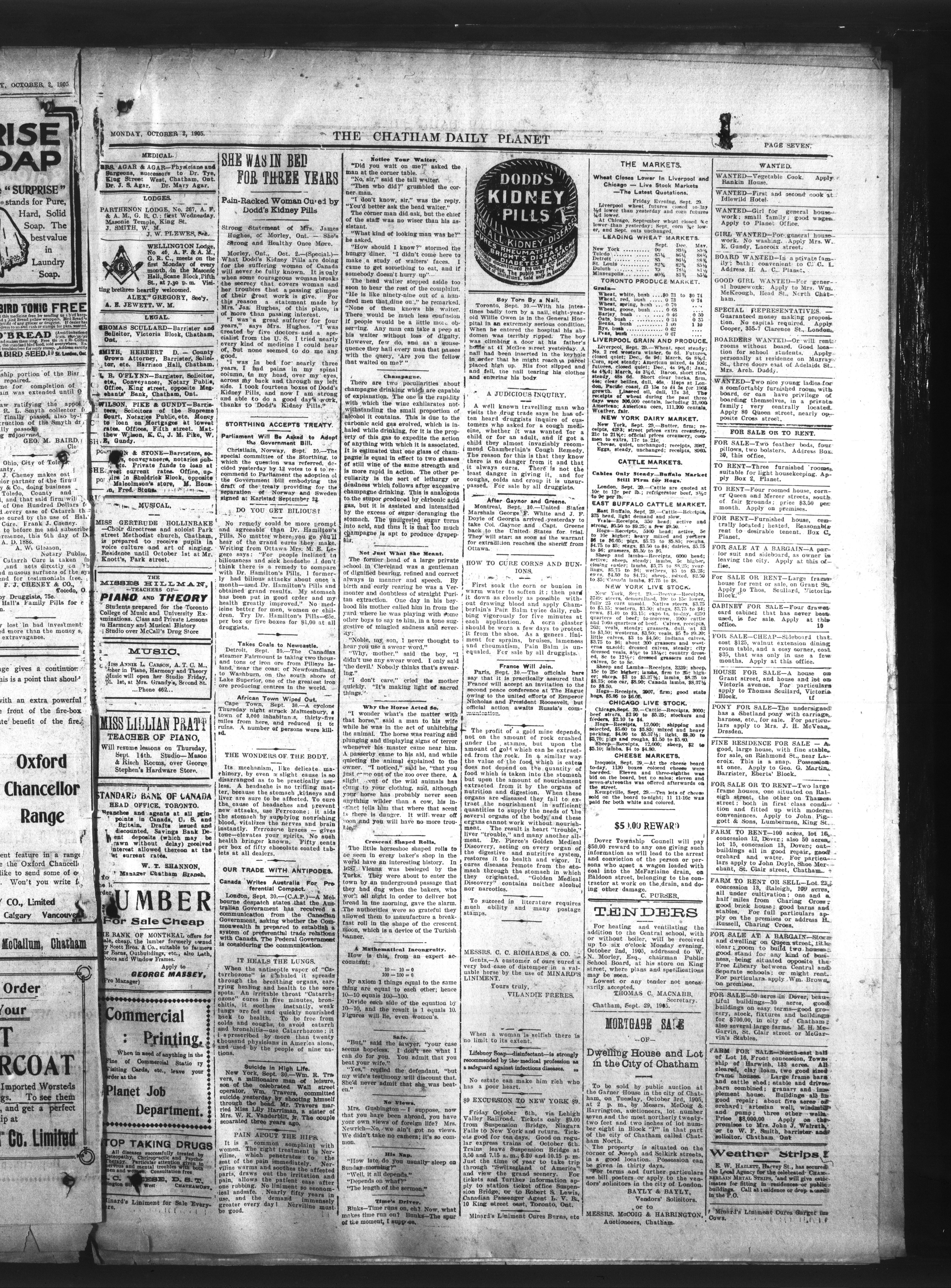 - The Chatham Daily Planet : Vol. XIV, No. 222 (October 2, 1905)