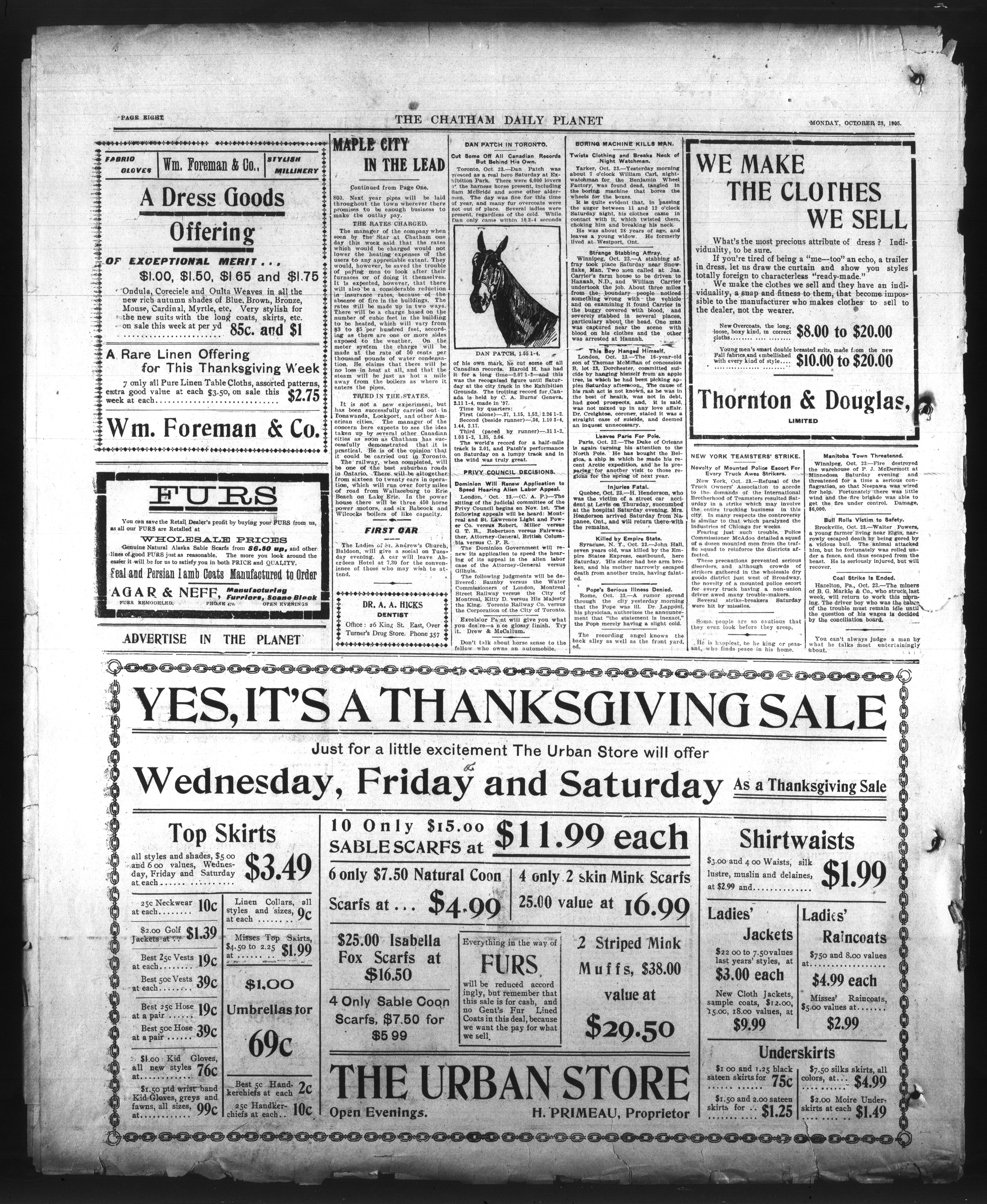 The Chatham Daily Planet : Vol. XIV, No. 240 (October 23, 1905)