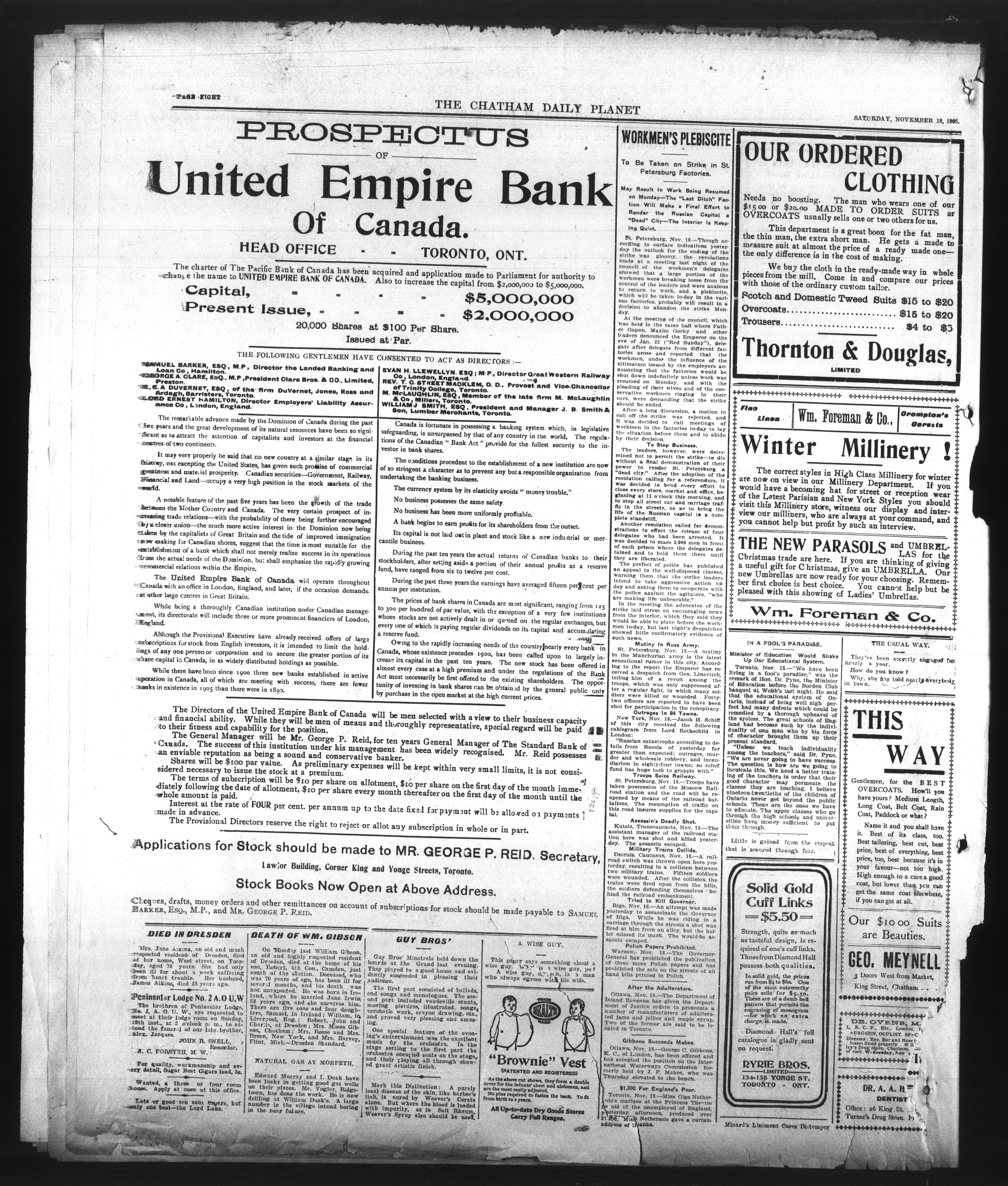 - The Chatham Daily Planet : Vol. XIV, No. 263 (November 18, 1905)