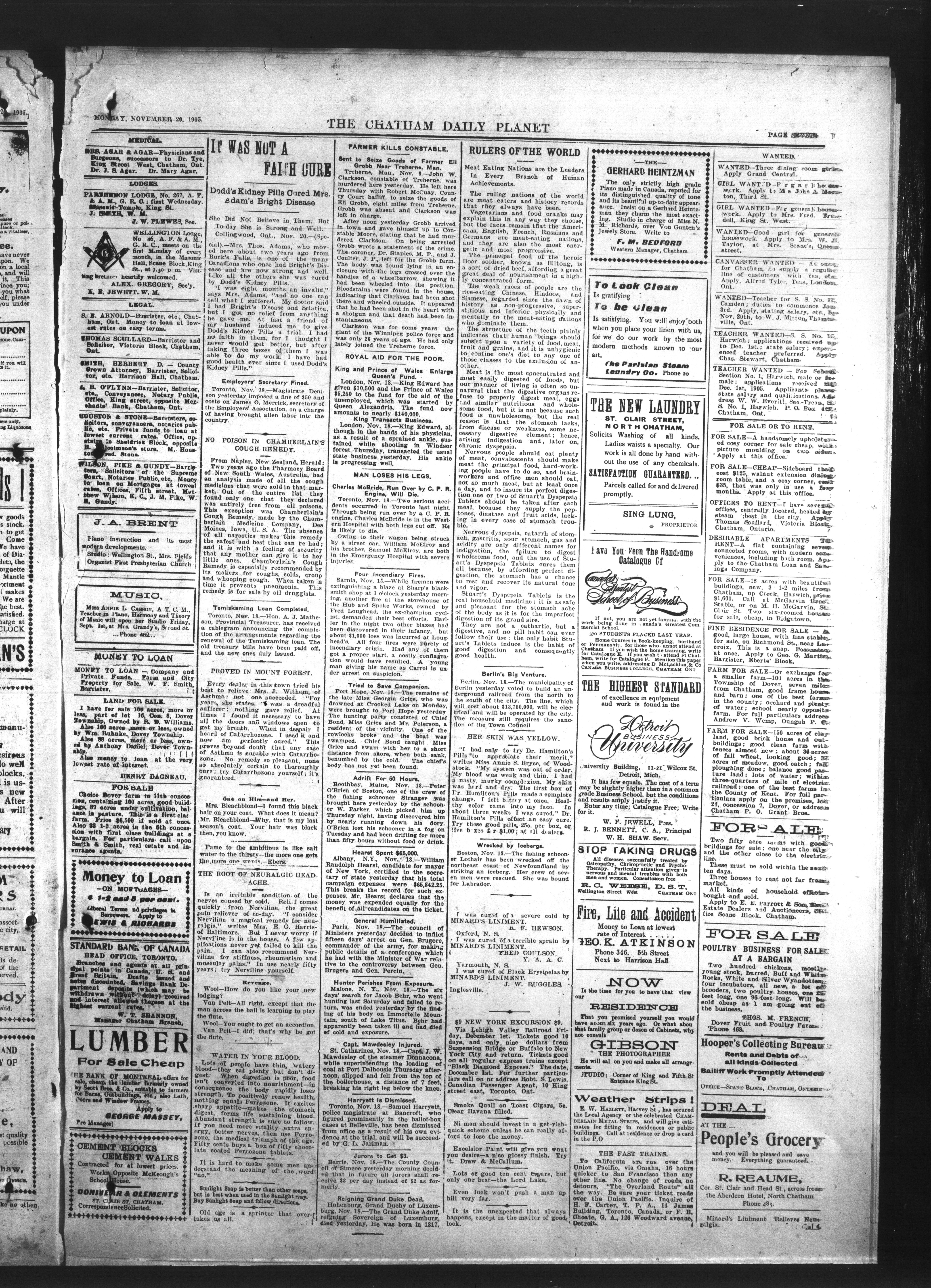 - The Chatham Daily Planet : Vol. XIV, No. 264 (November 20, 1905)