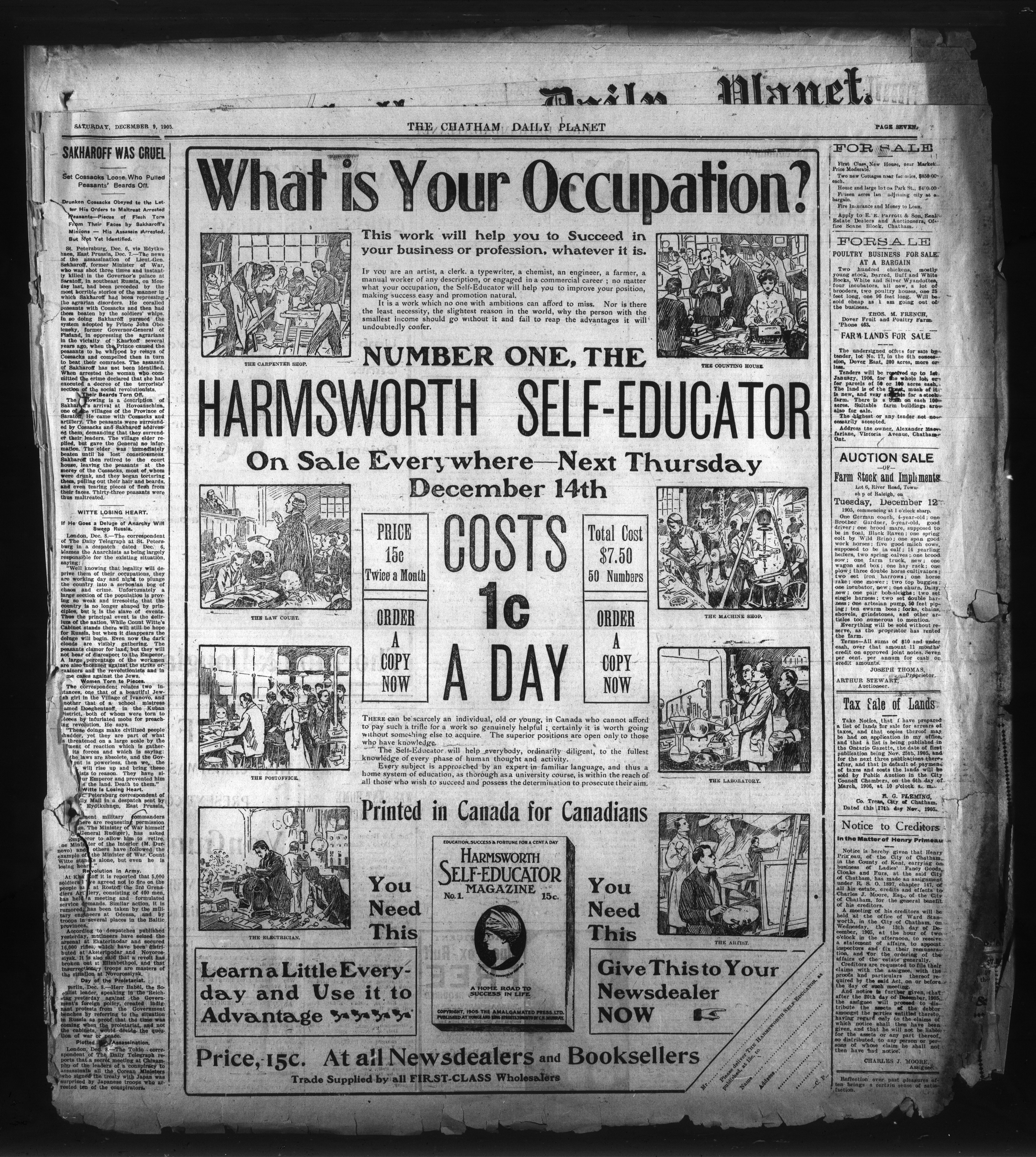 - The Chatham Daily Planet : Vol. XIV, No. 281 (December 9, 1905)
