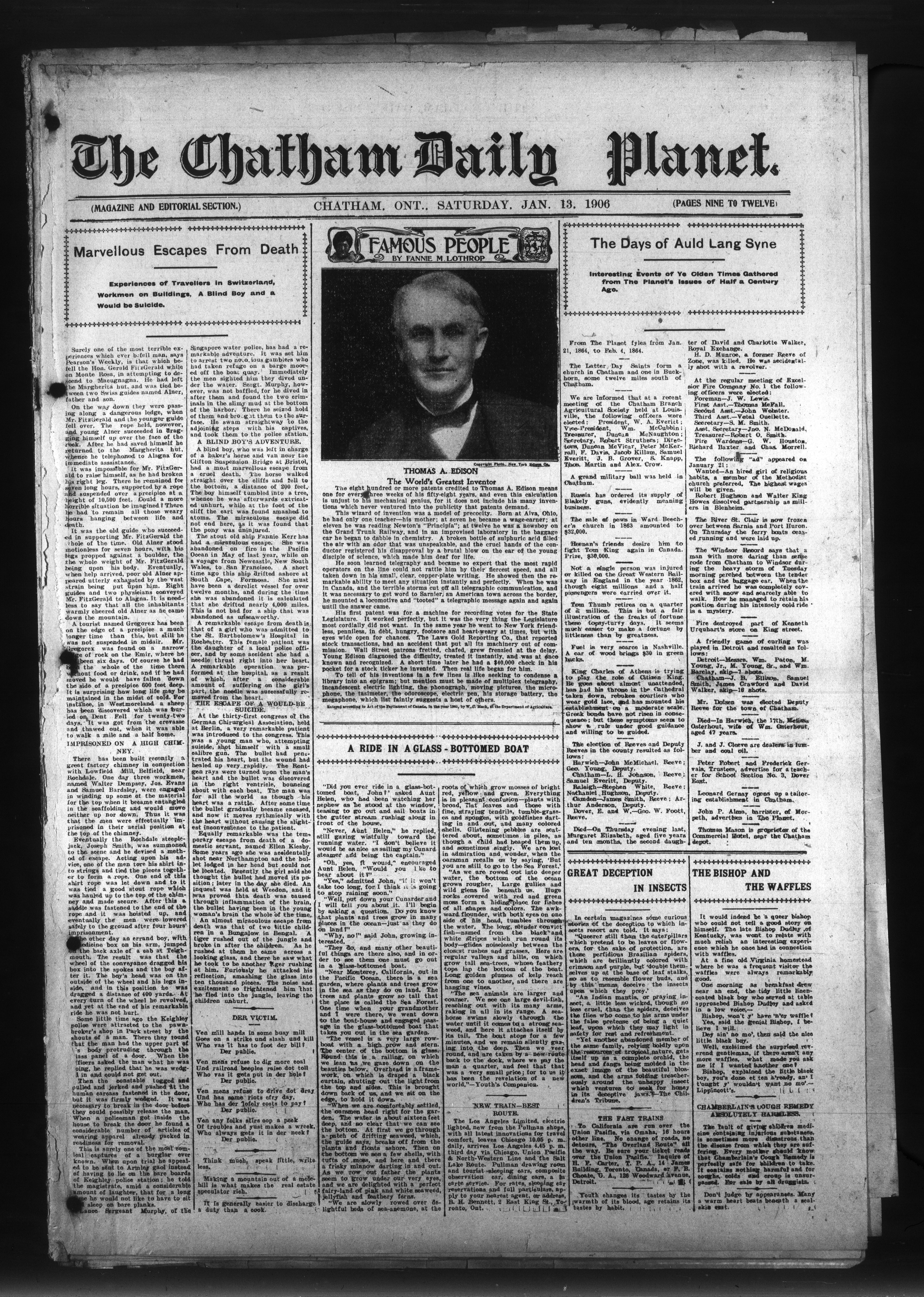 - The Chatham Daily Planet : Vol. XV, No. 12 (January 13, 1906)
