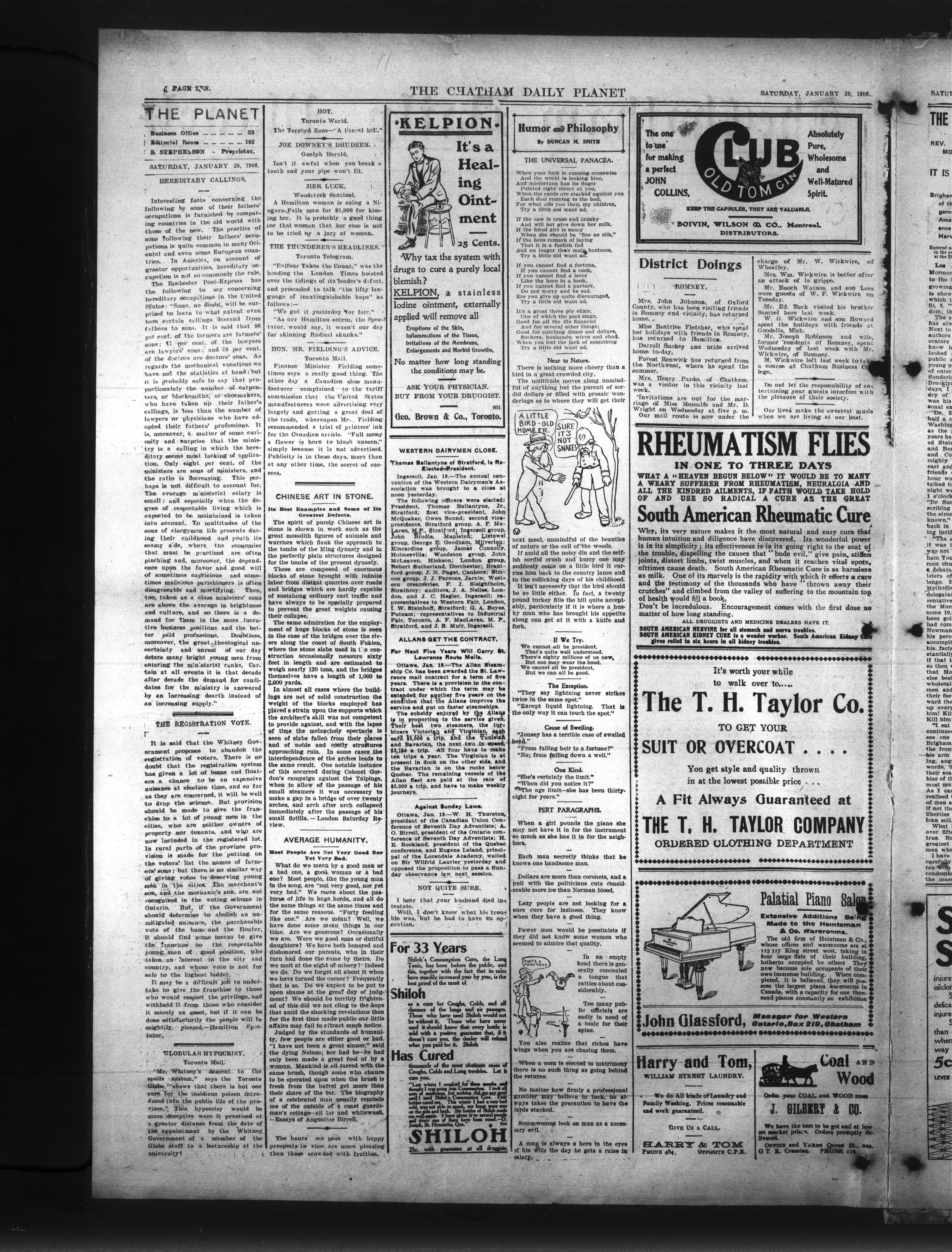 The Chatham Daily Planet. : The Chatham Daily Planet : Vol. XV, No. 18 (January 20, 1906)