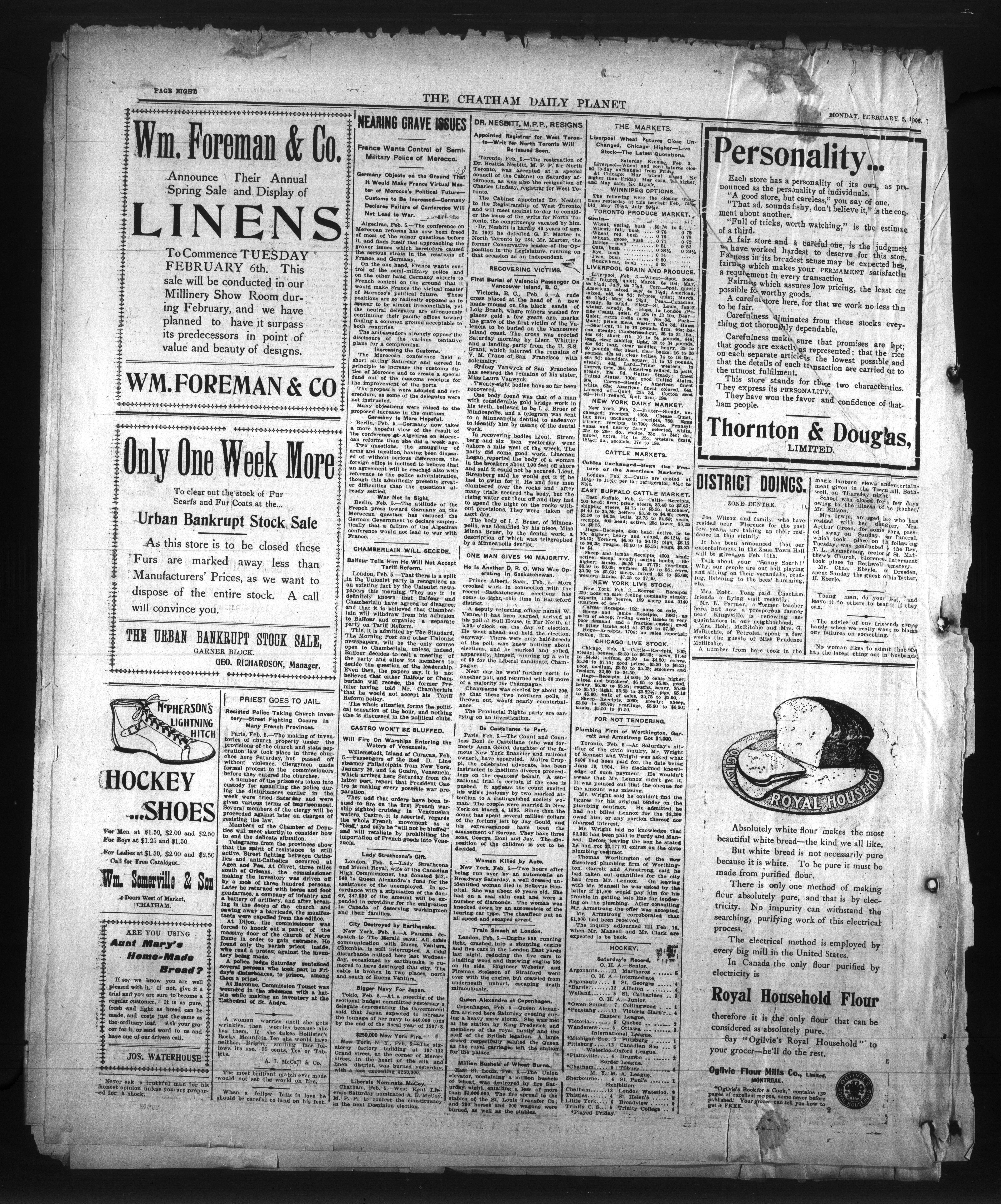 The Chatham Daily Planet. : The Chatham Daily Planet : Vol. XV, No. 28 (February 5, 1906)