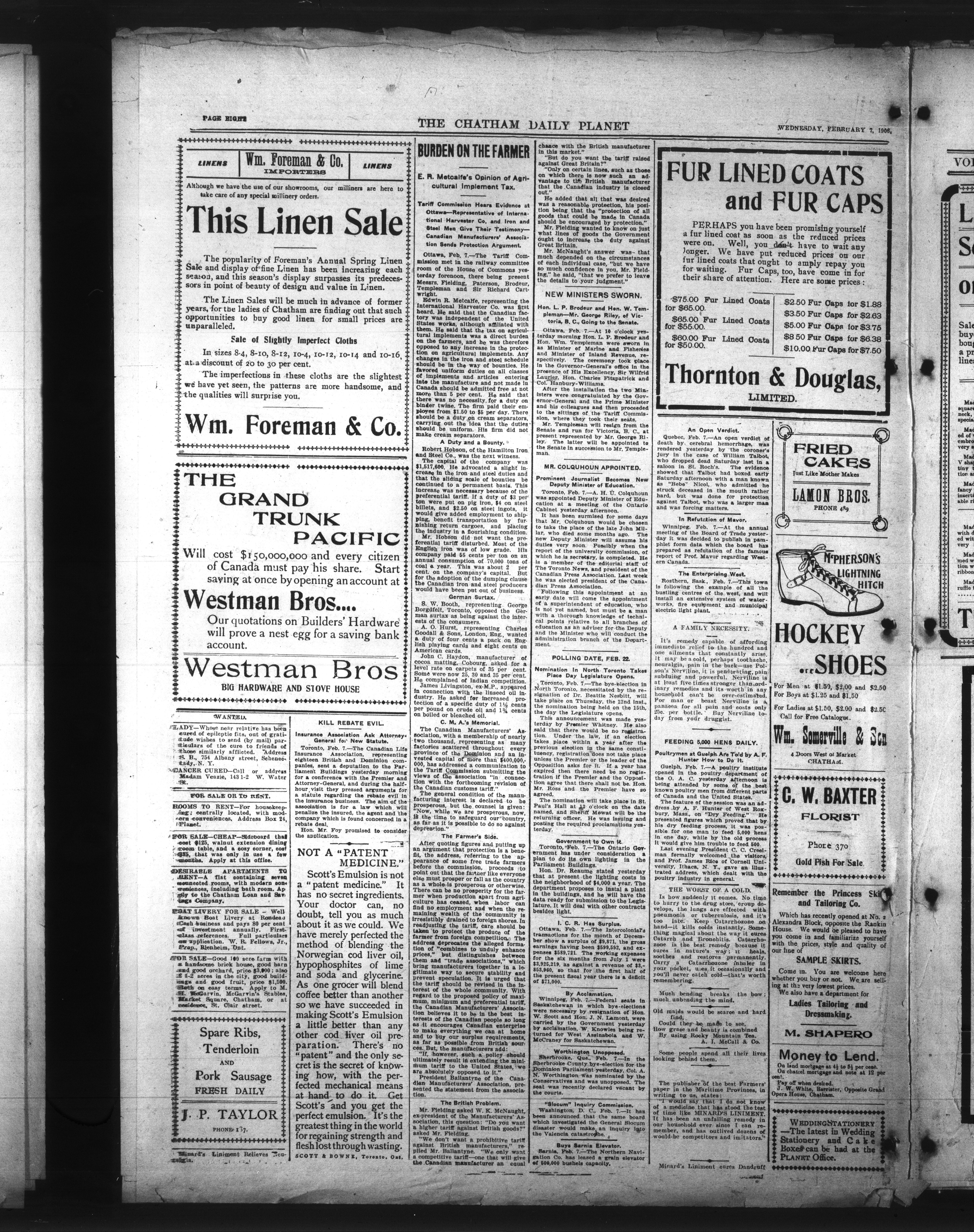 The Chatham Daily Planet : Vol. XV, No. 30 (February 7, 1906)