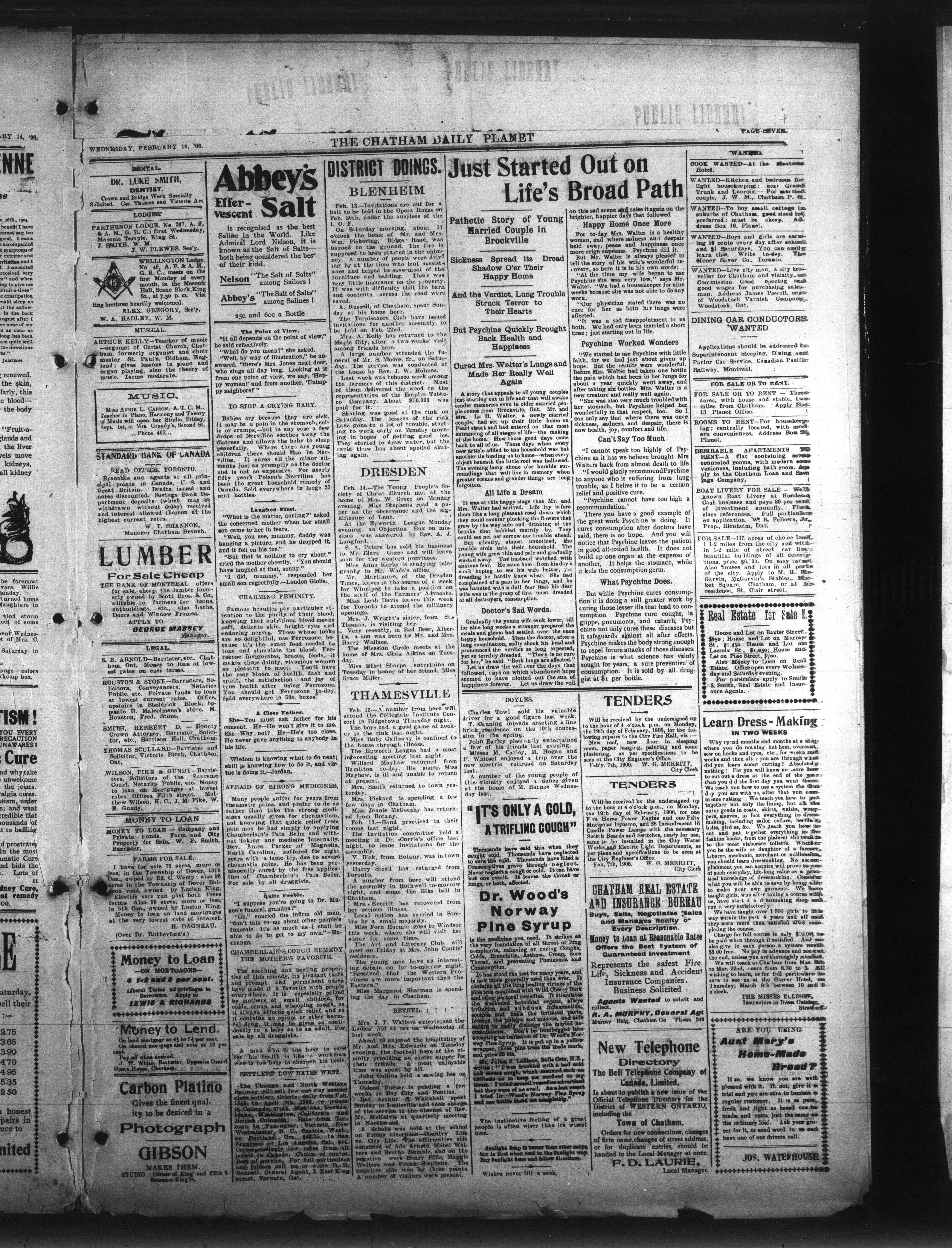 - The Chatham Daily Planet : Vol. XV, No. 36 (February 14, 1906)