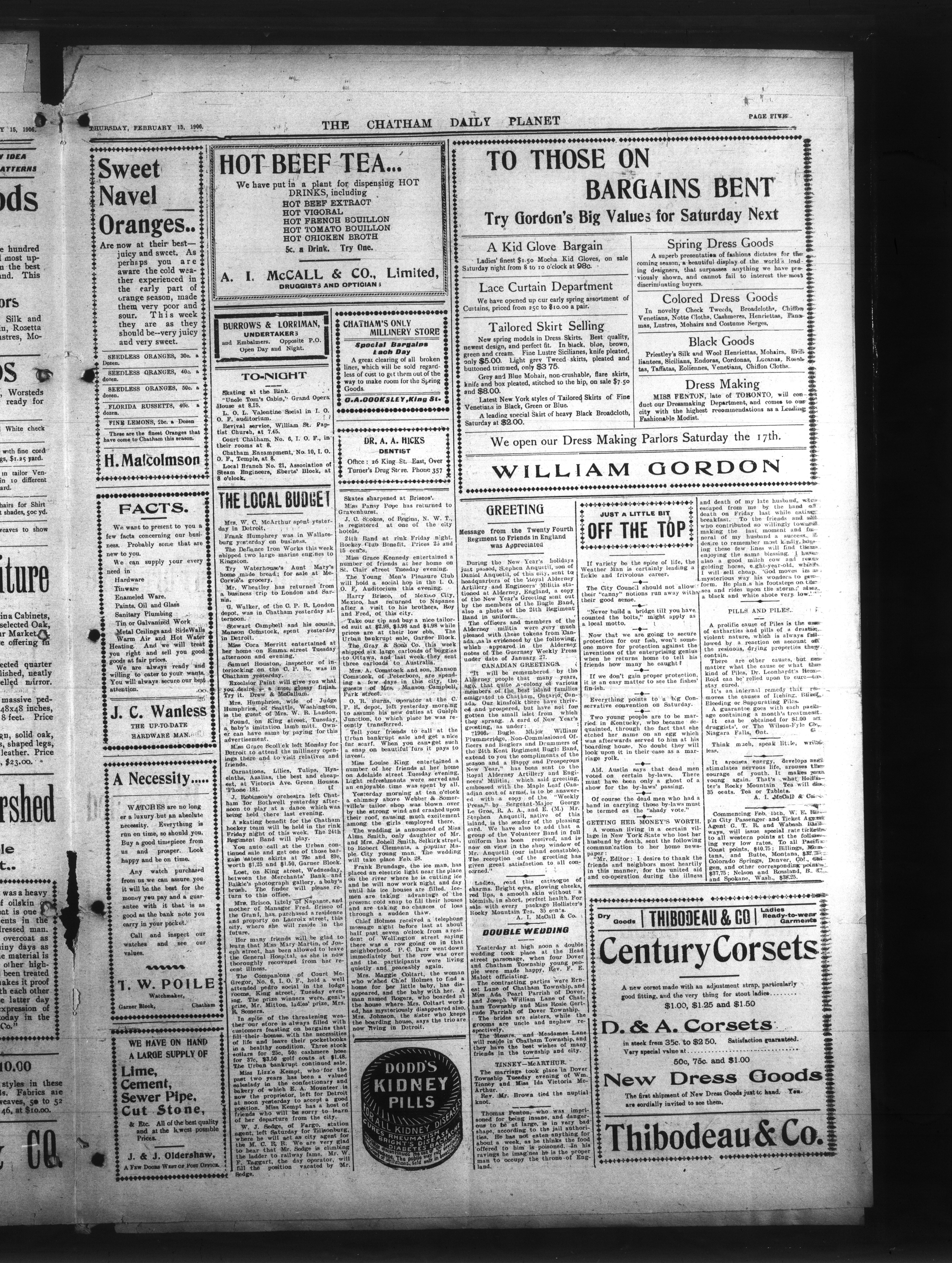 The Chatham Daily Planet. : The Chatham Daily Planet : Vol. XV, No. 37 (February 15, 1906)