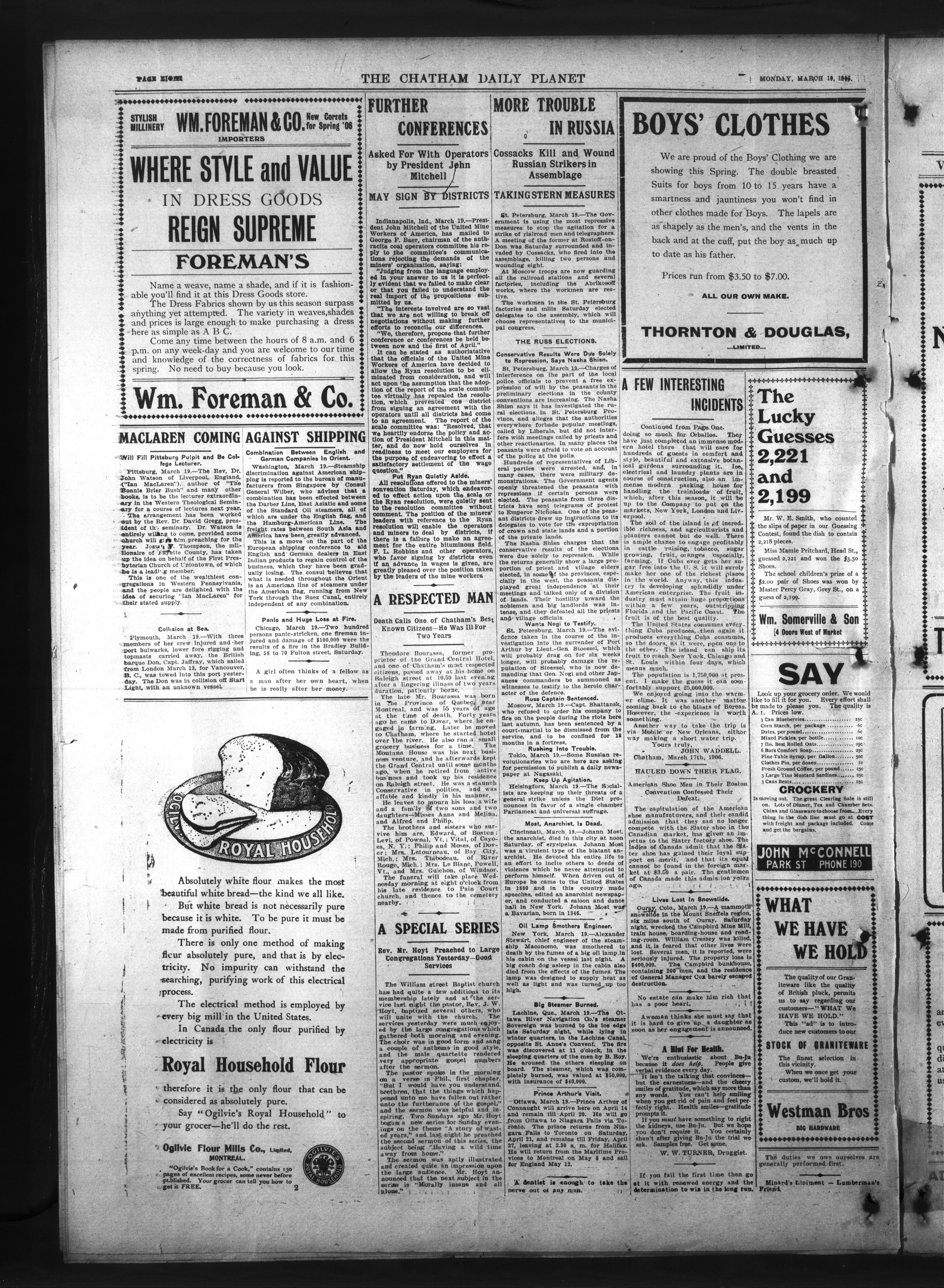 - The Chatham Daily Planet : Vol. XV, No. 64 (March 19, 1906)
