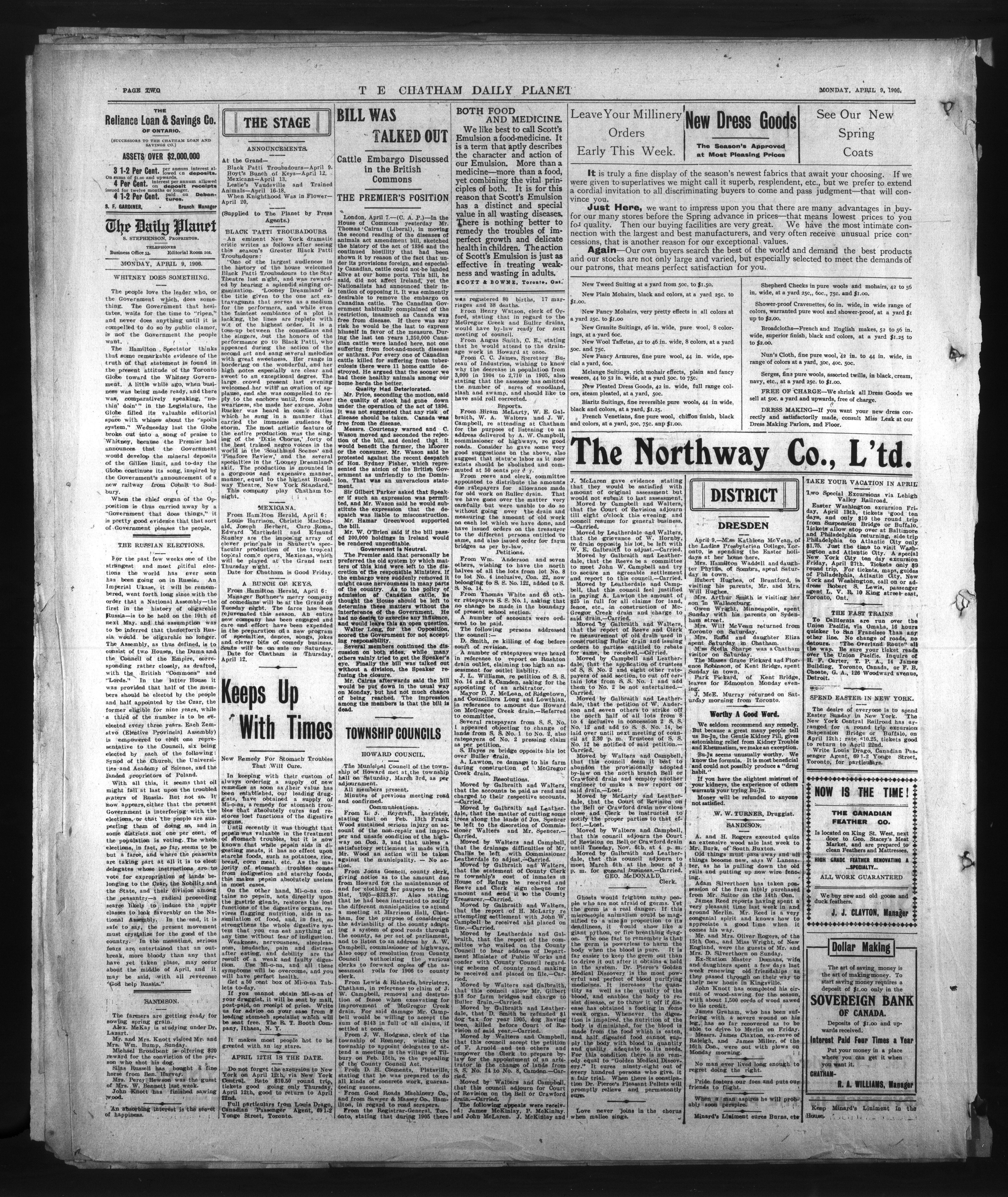 - The Chatham Daily Planet : Vol. XV, No. 82 (April 9, 1906)