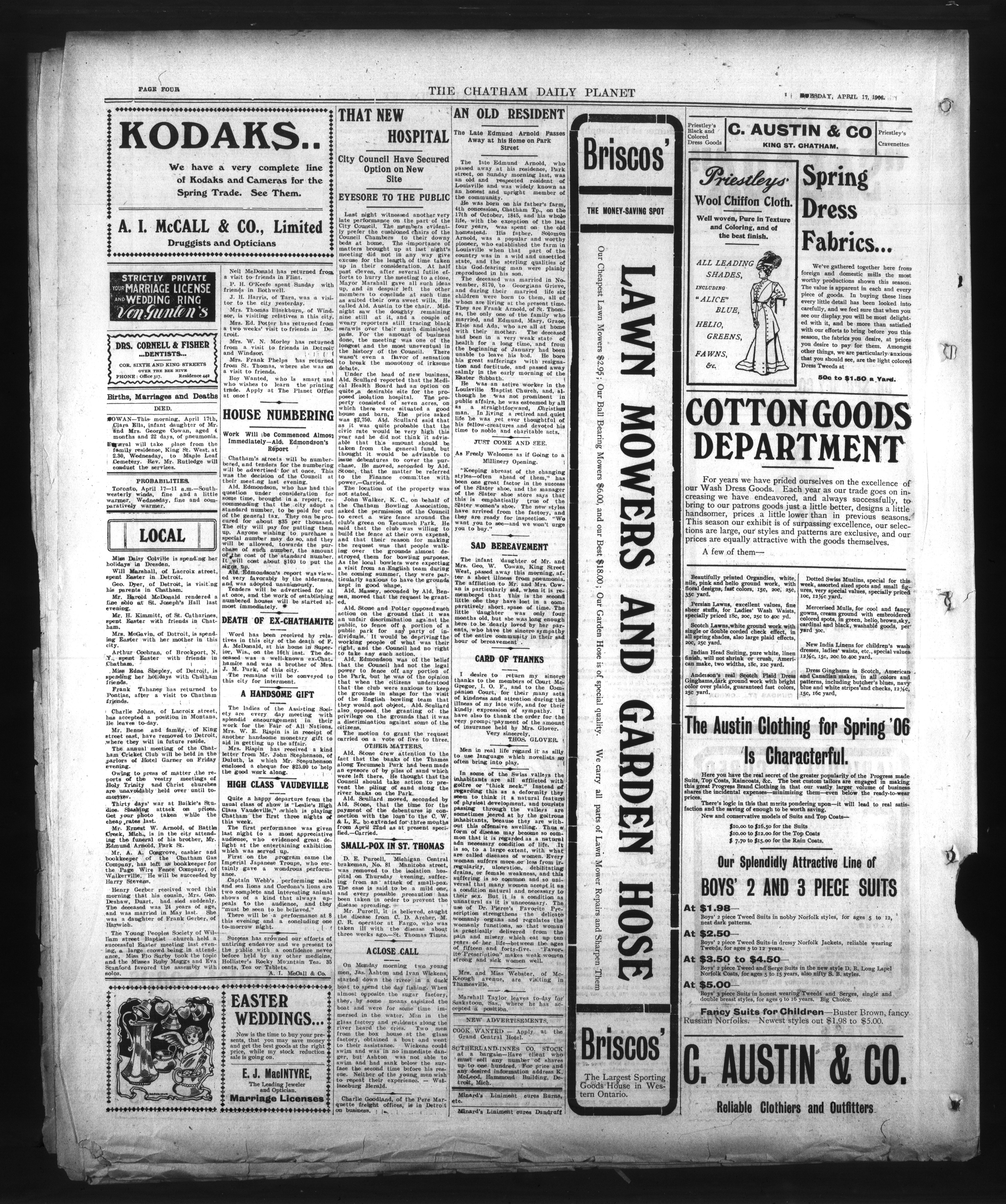 - The Chatham Daily Planet : Vol. XV, No. 89 (April 17, 1906)