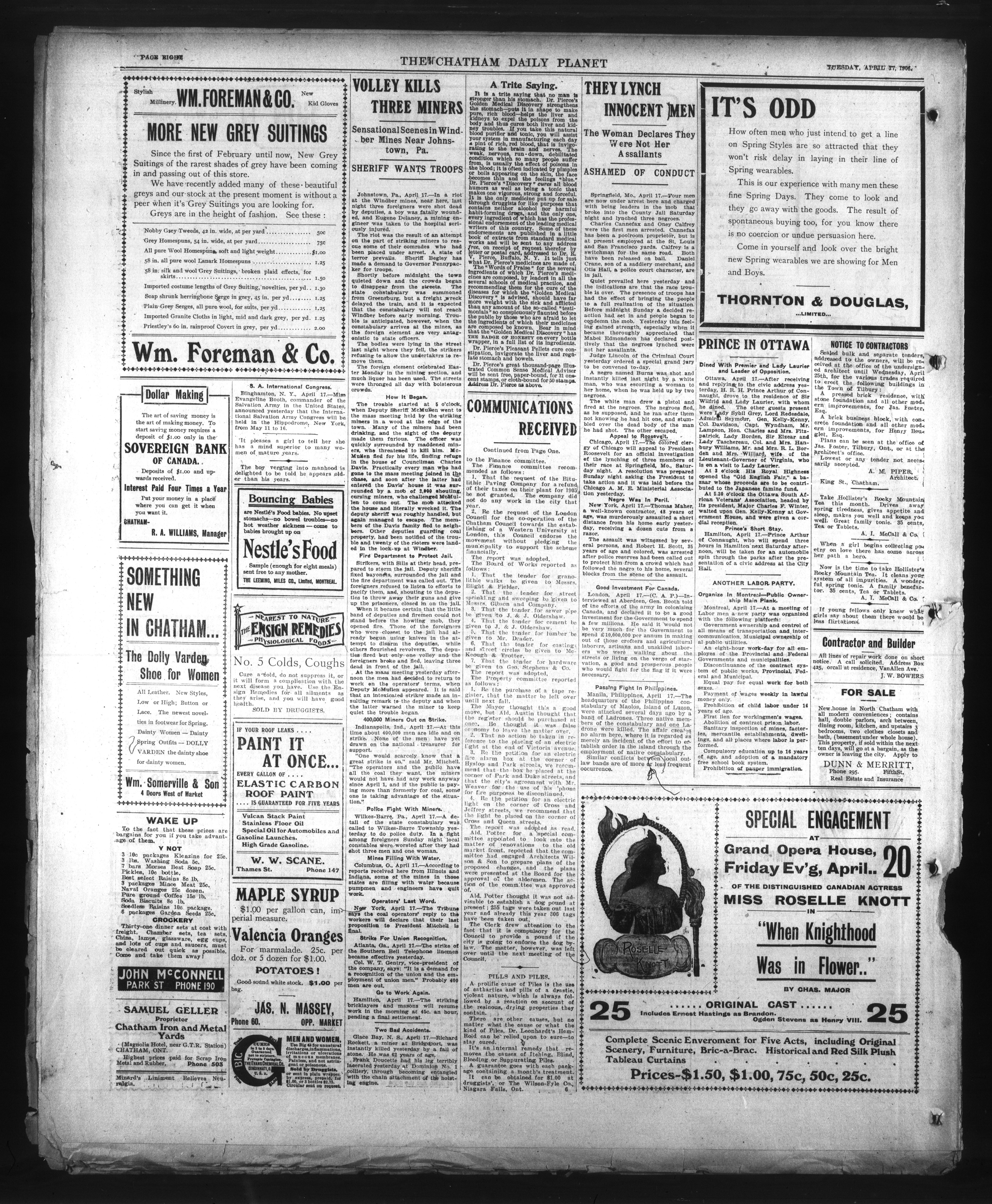- The Chatham Daily Planet : Vol. XV, No. 89 (April 17, 1906)