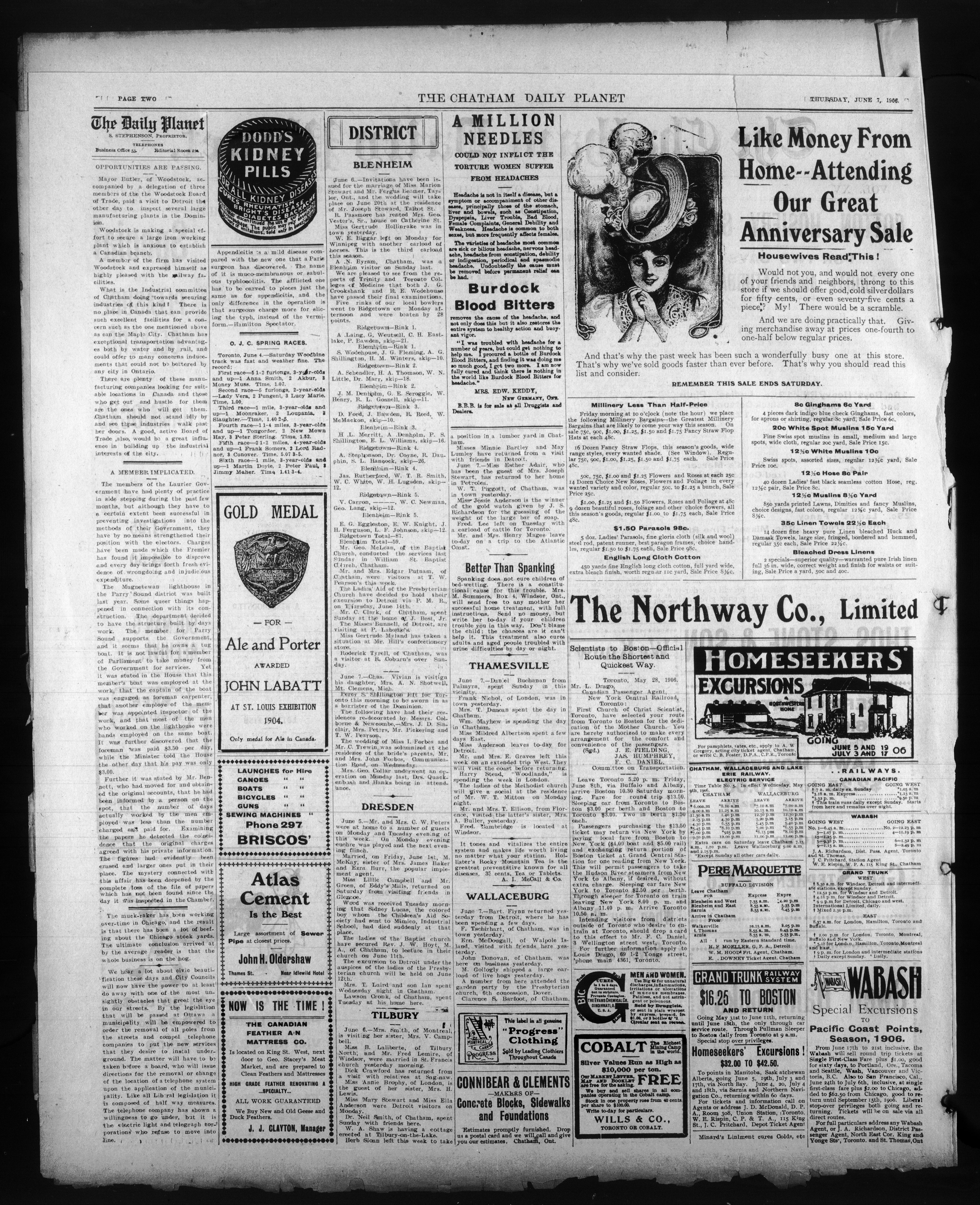 - The Chatham Daily Planet : Vol. XV, No. 133 (June 7, 1906)