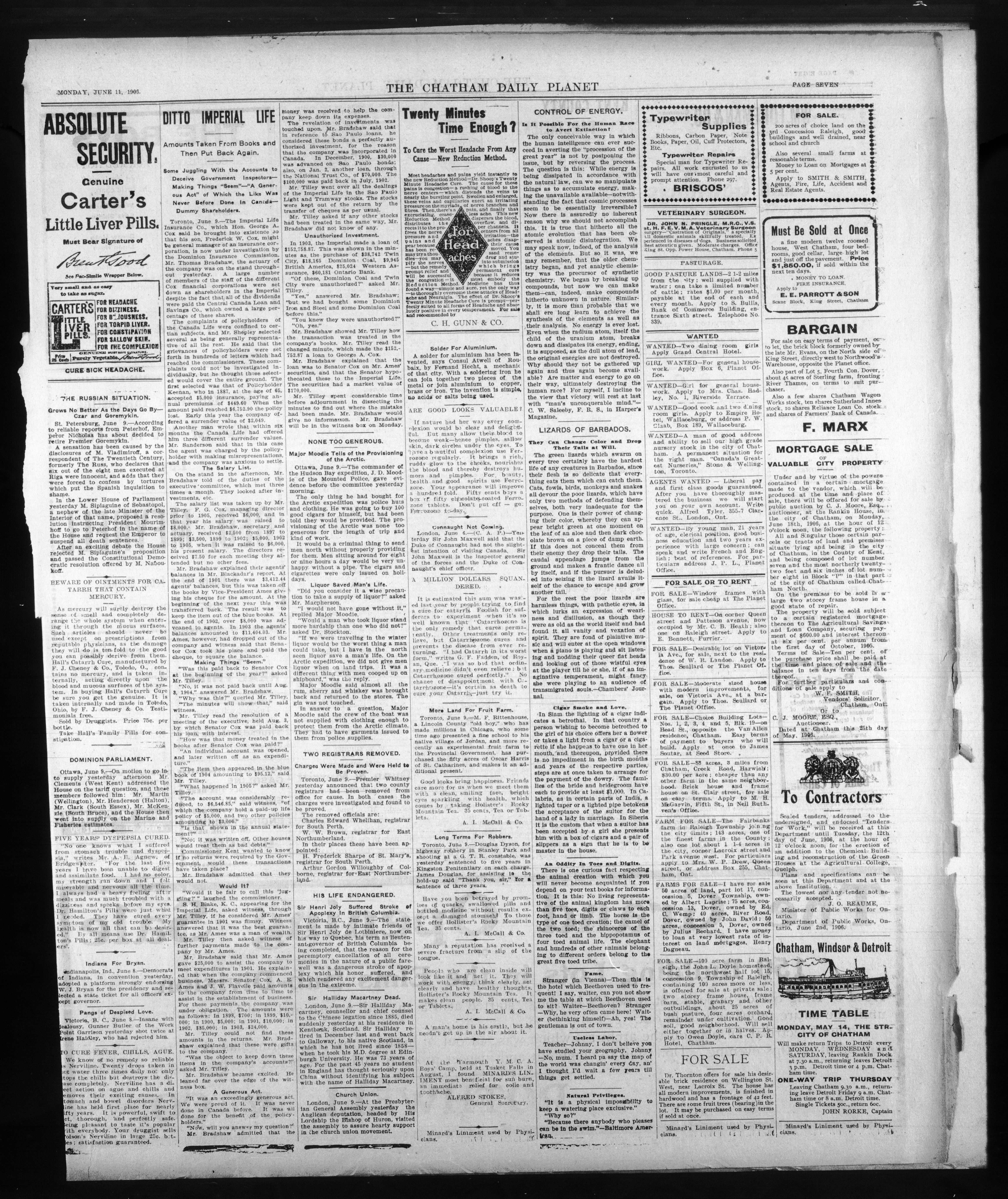 - The Chatham Daily Planet : Vol. XV, No. 136 (June 11, 1906)