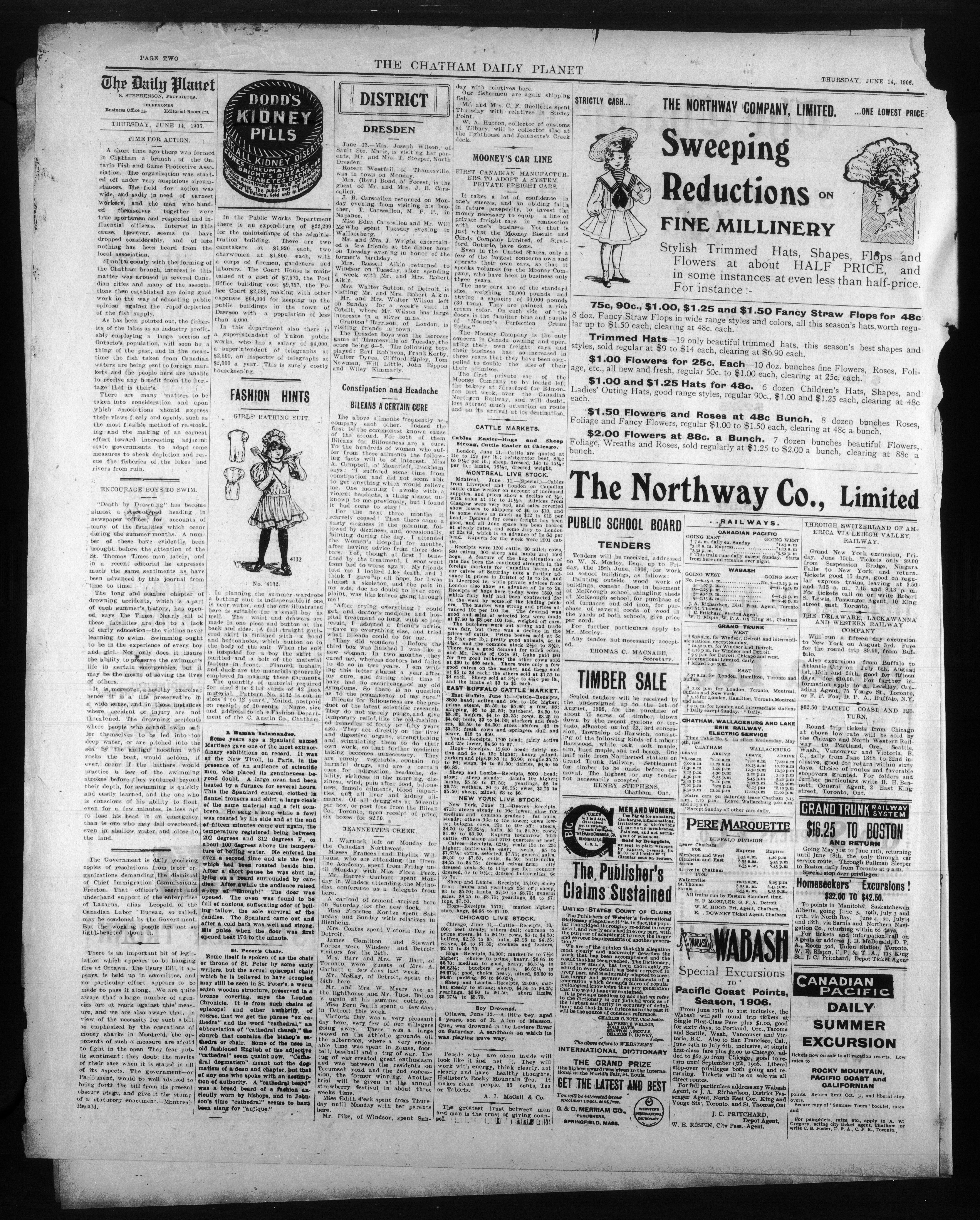 - The Chatham Daily Planet : Vol. XV, No. 139 (June 14, 1906)