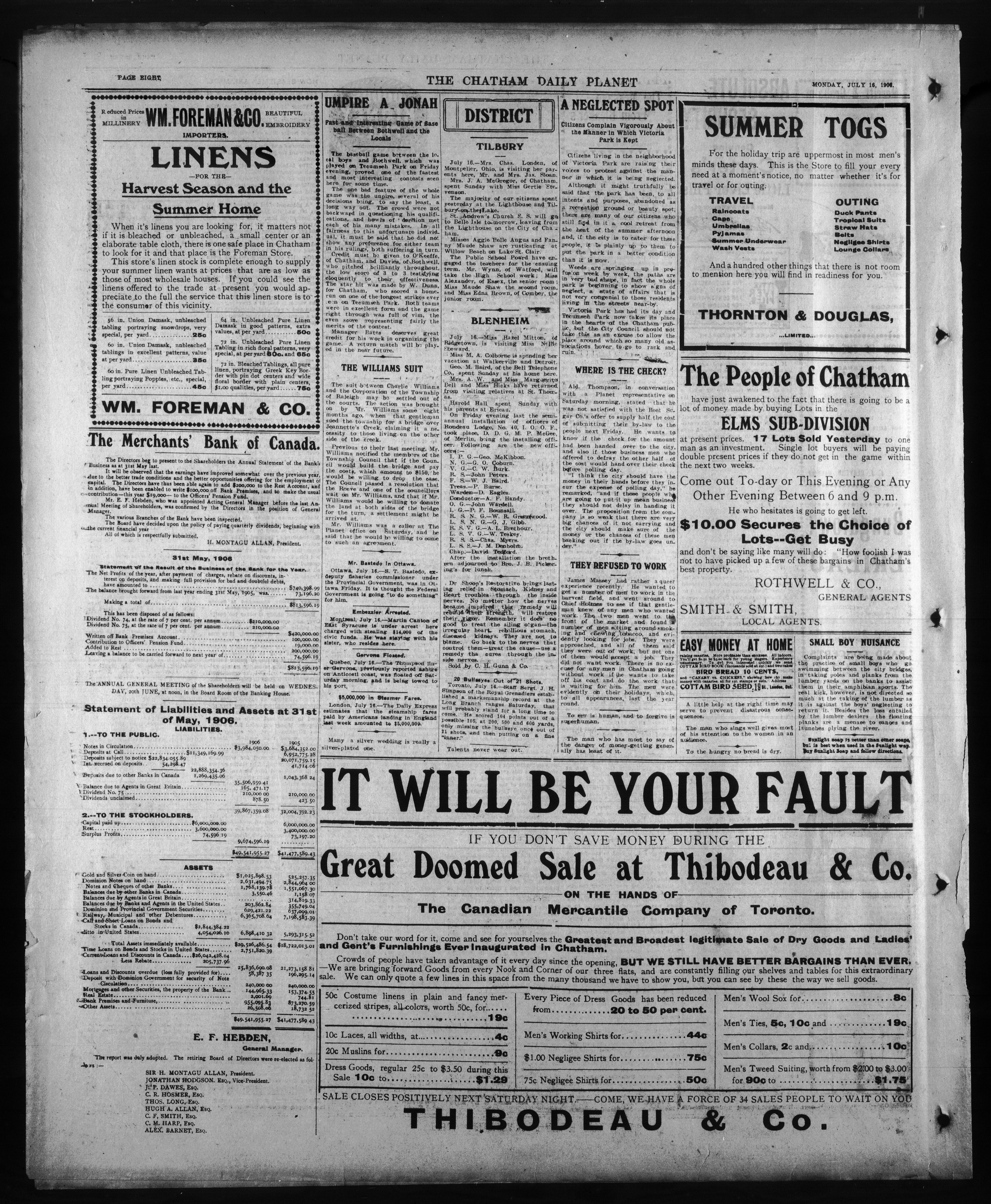 - The Chatham Daily Planet : Vol. XV, No. 169 (July 16, 1906)