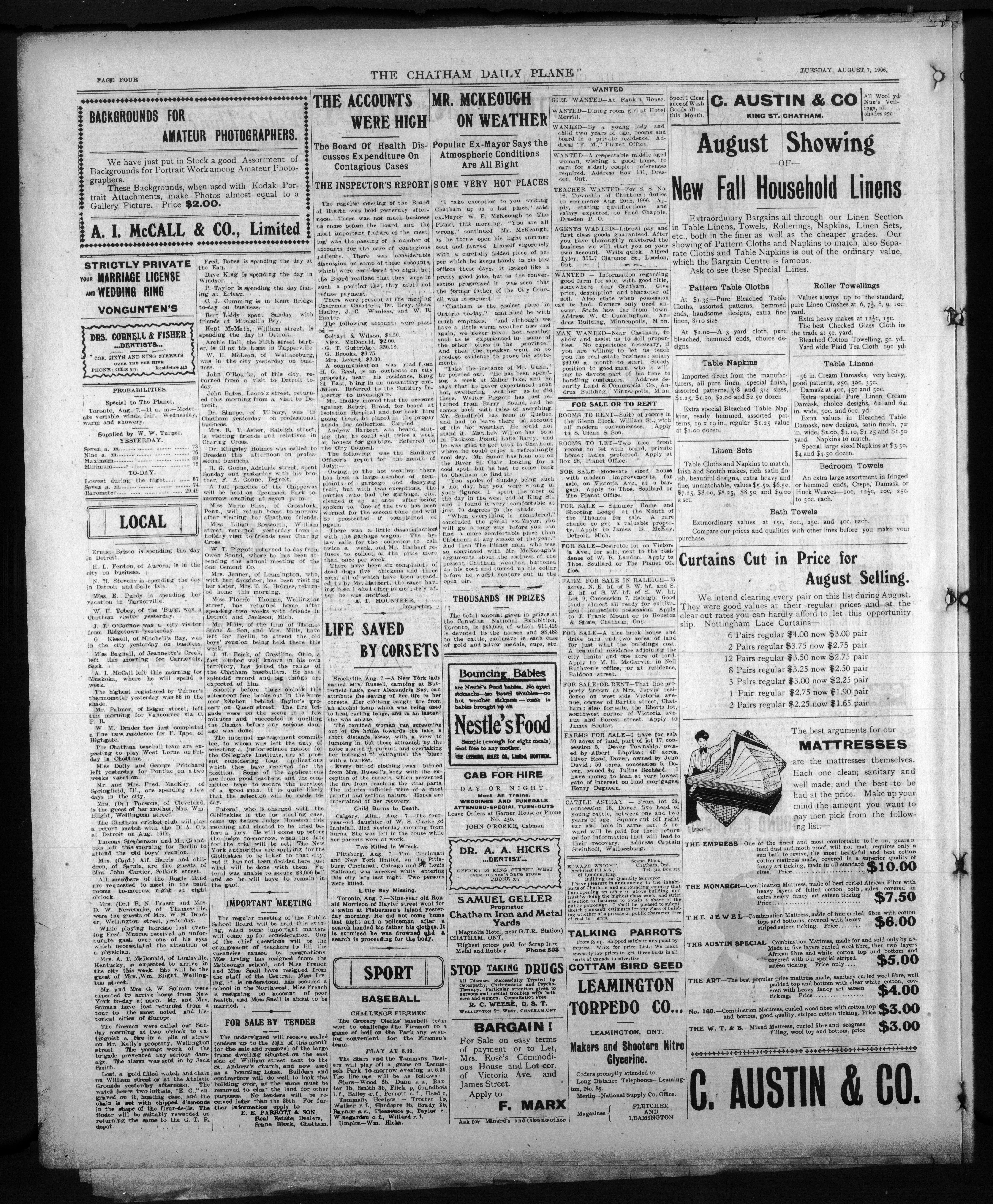 - The Chatham Daily Planet : Vol. XV, No. 188 (August 7, 1906)