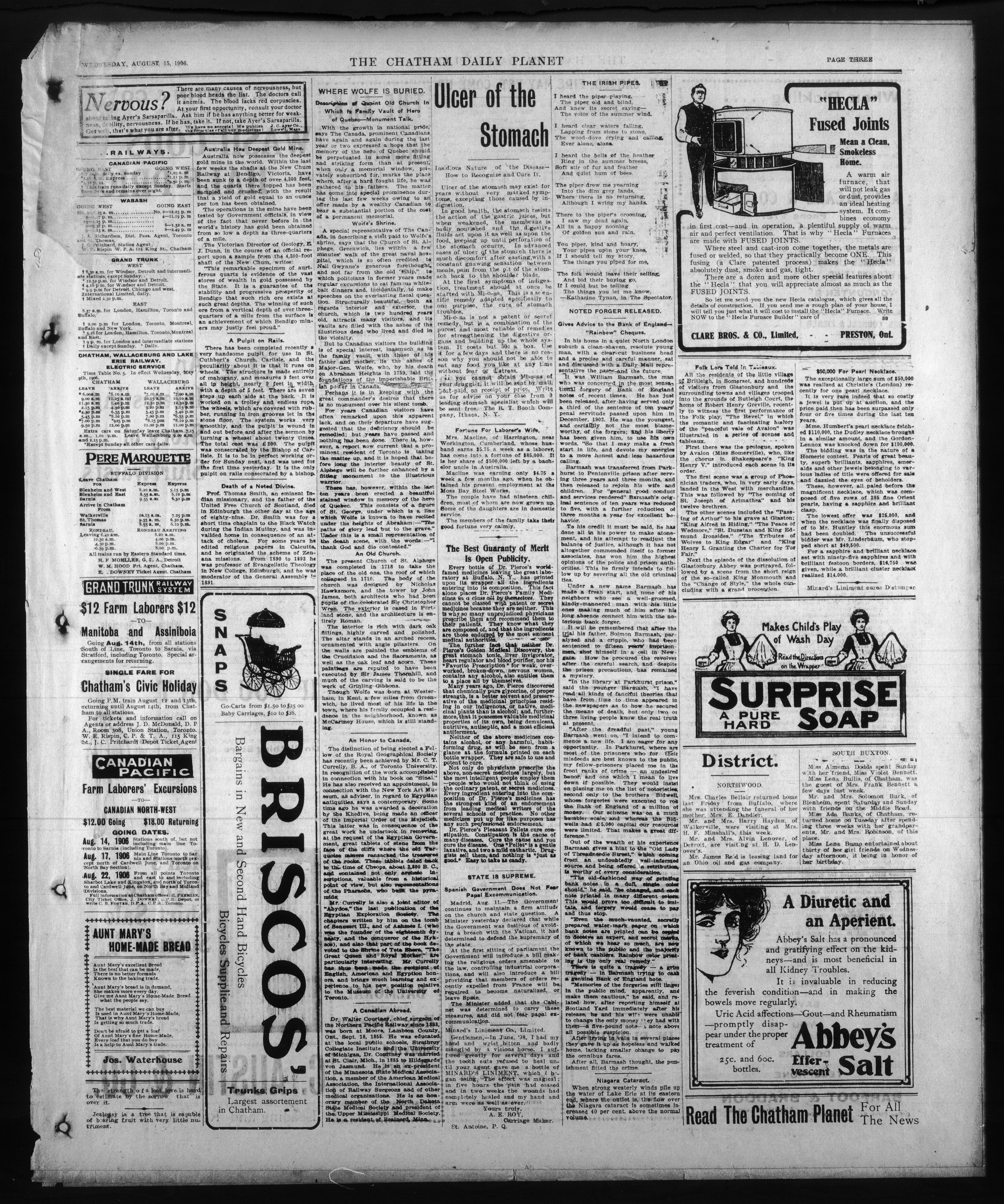 - The Chatham Daily Planet : Vol. XV, No. 195 (August 15, 1906)