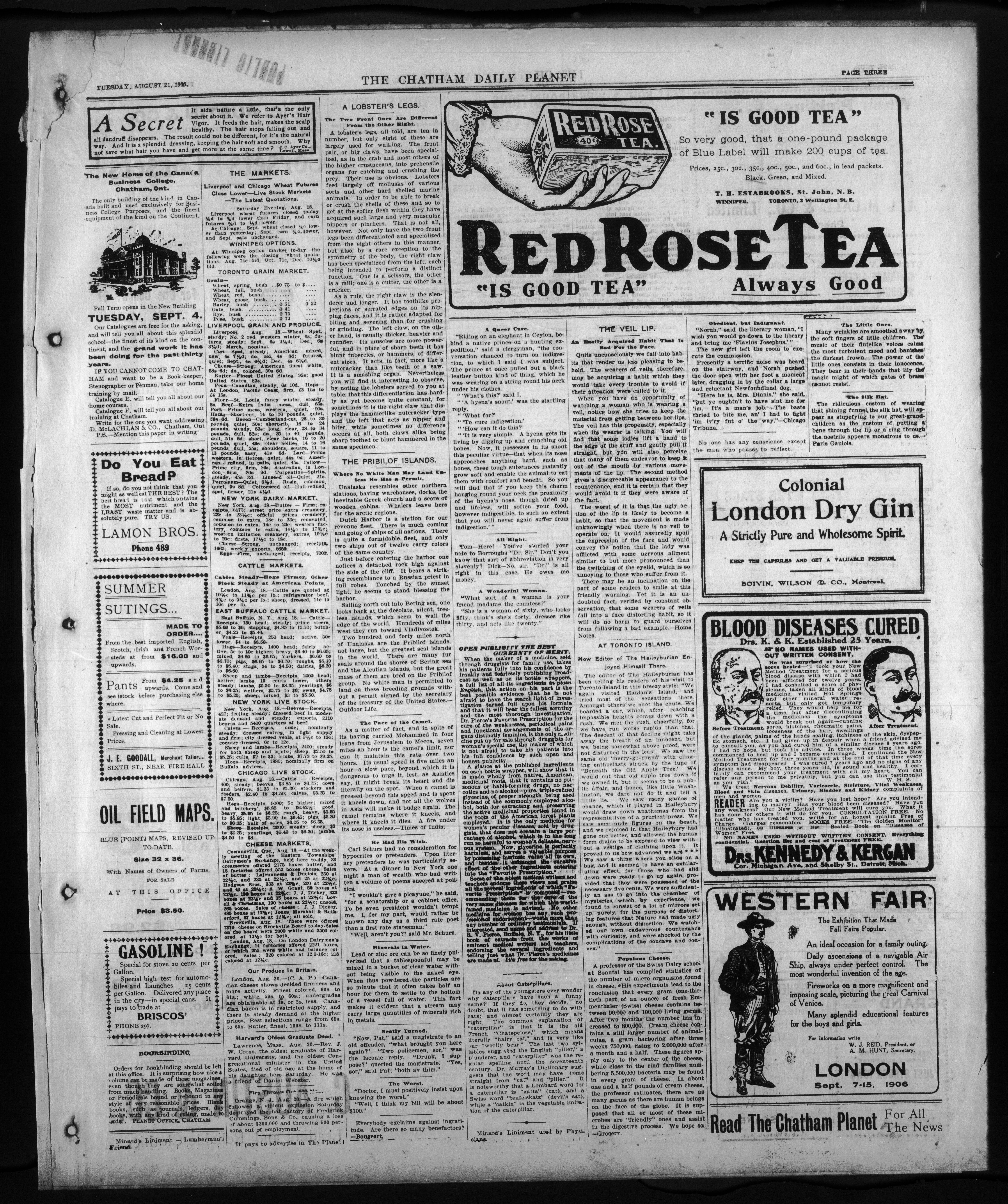 - The Chatham Daily Planet : Vol. XV, No. 200 (August 21, 1906)