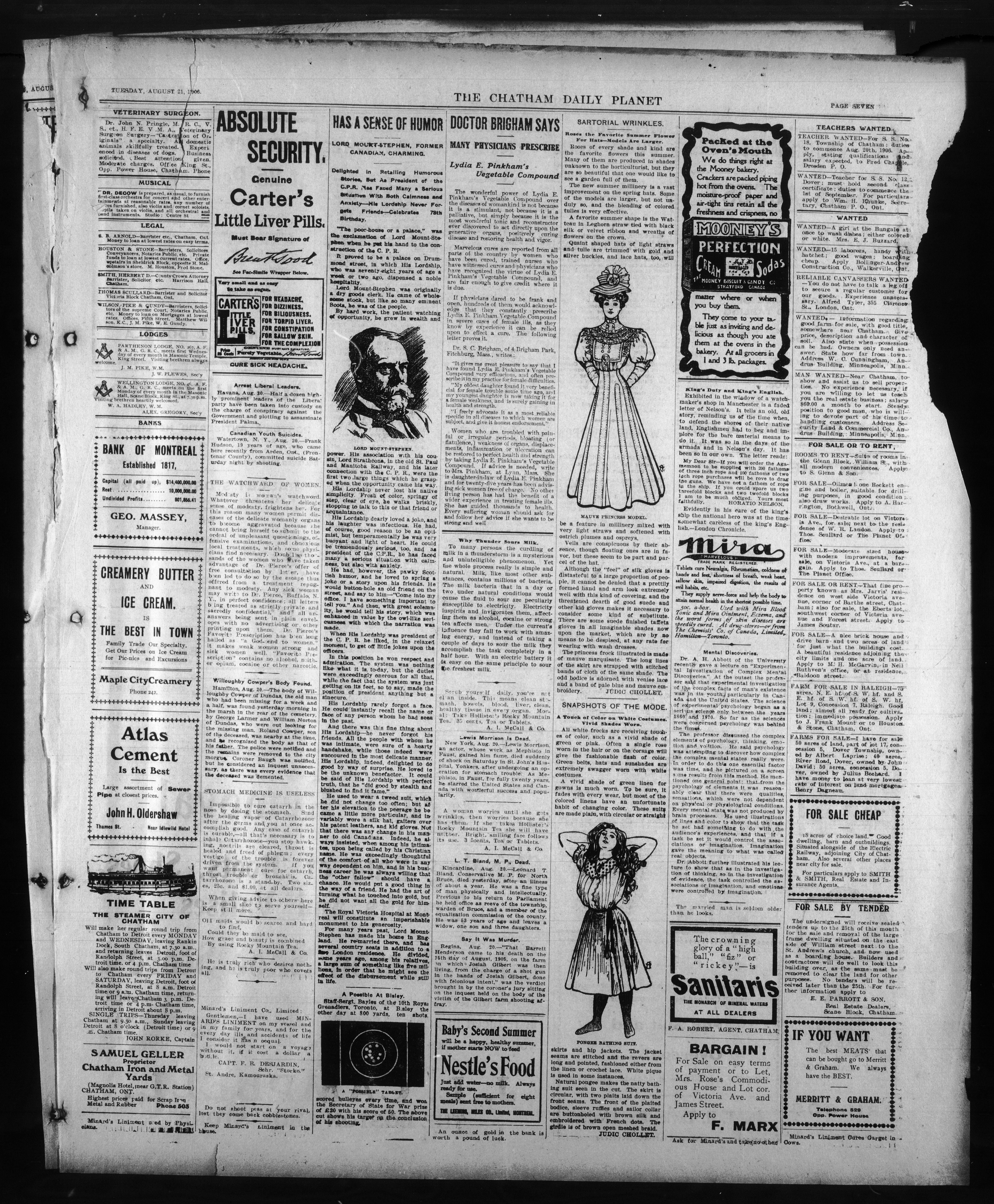- The Chatham Daily Planet : Vol. XV, No. 200 (August 21, 1906)